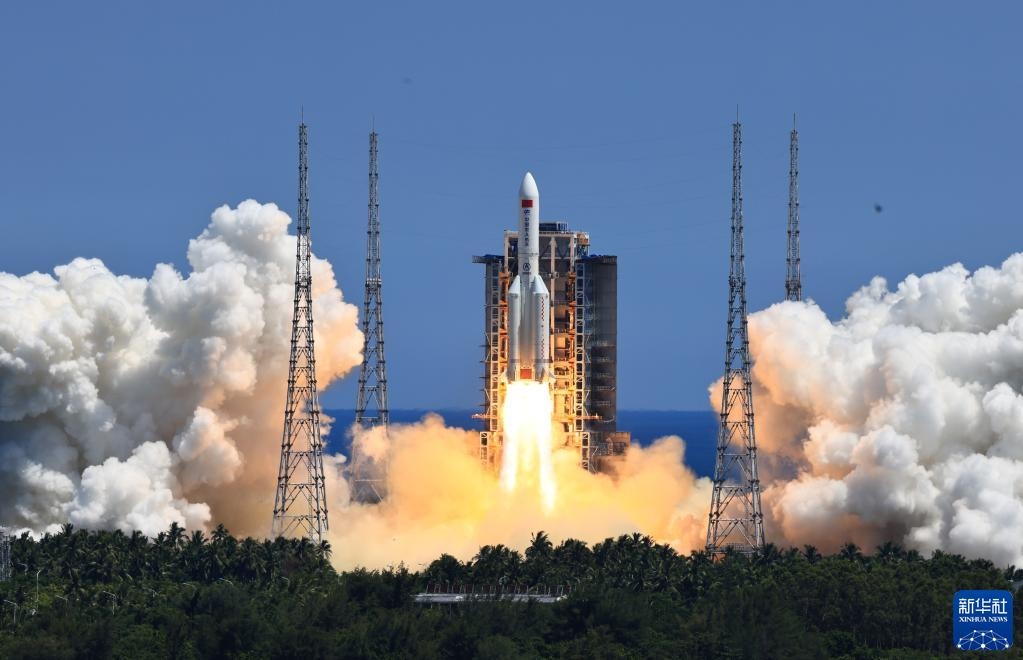 2022年7月24日,搭載問天實(shí)驗(yàn)艙的長征五號B遙三運(yùn)載火箭,在我國文昌航天發(fā)射場點(diǎn)火發(fā)射。新華社記者李剛攝