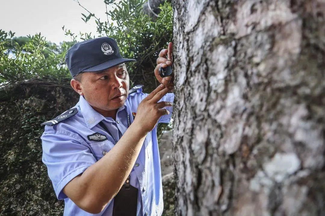 除了觀察樹皮、梢頭、枝丫、冠頂之外,胡曉春每天的巡檢細到連松針都不放過。