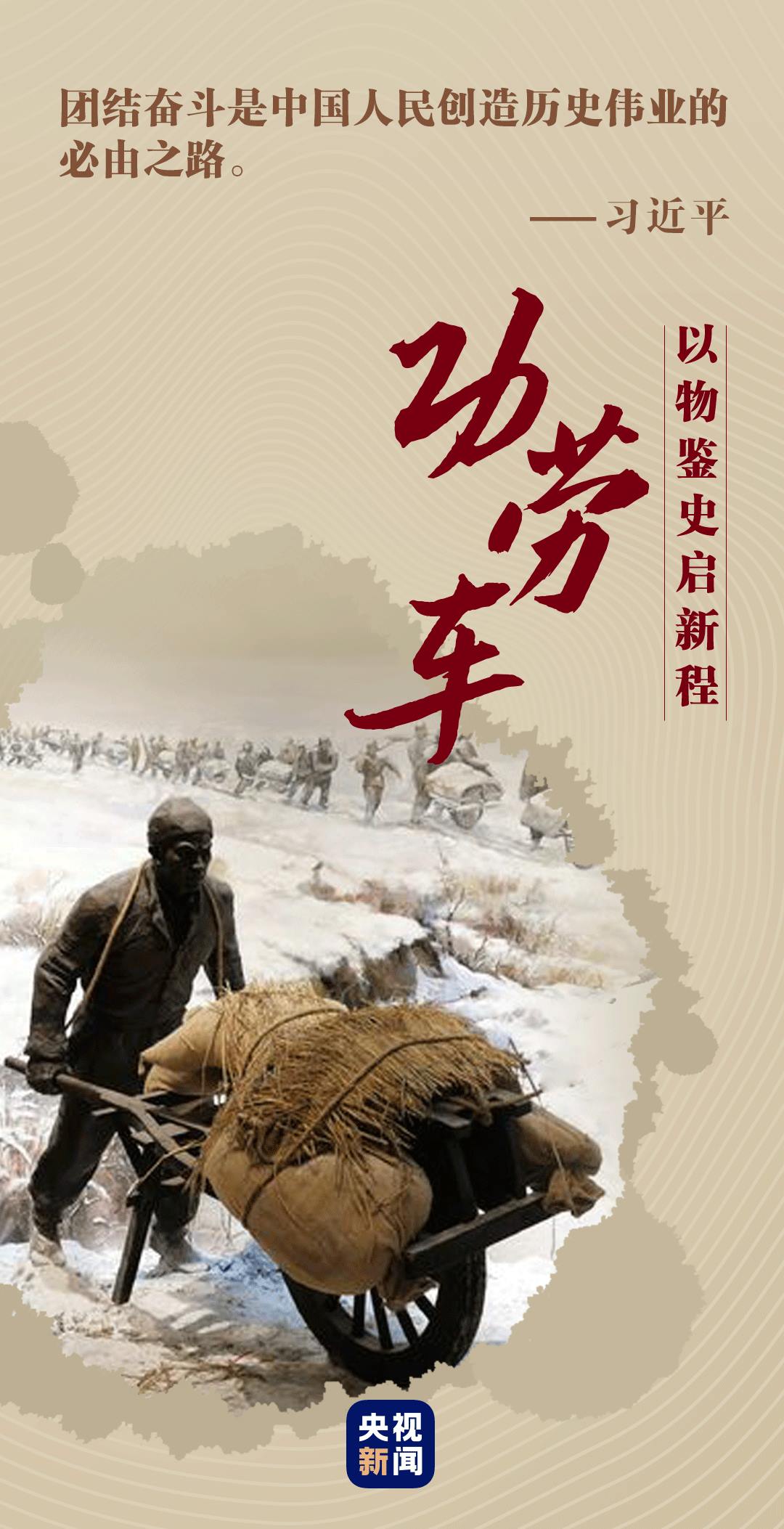 在中國(guó)共產(chǎn)黨歷史展覽館,靜臥著一輛淮海戰(zhàn)役中泗水縣模范運(yùn)輸團(tuán)運(yùn)糧的功勞車。它向人們講述著當(dāng)年硝煙彌漫的戰(zhàn)場(chǎng)上,人民群眾團(tuán)結(jié)一心,用一輛輛小車推出戰(zhàn)役勝利的感人故事。