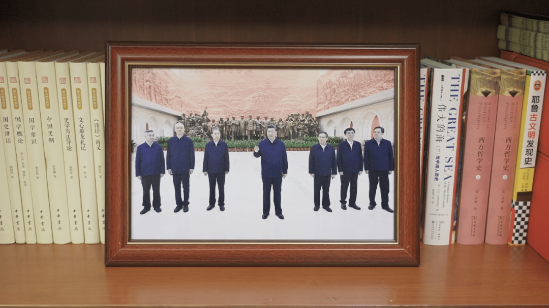 “江山就是人民,人民就是江山?!比嗣袢罕姷拿恳患?,就是習(xí)近平總書記心頭牽掛的事。書架上增加了三張總書記2022年在國內(nèi)多地考察的照片,記錄著總書記繁忙奔走的身影。