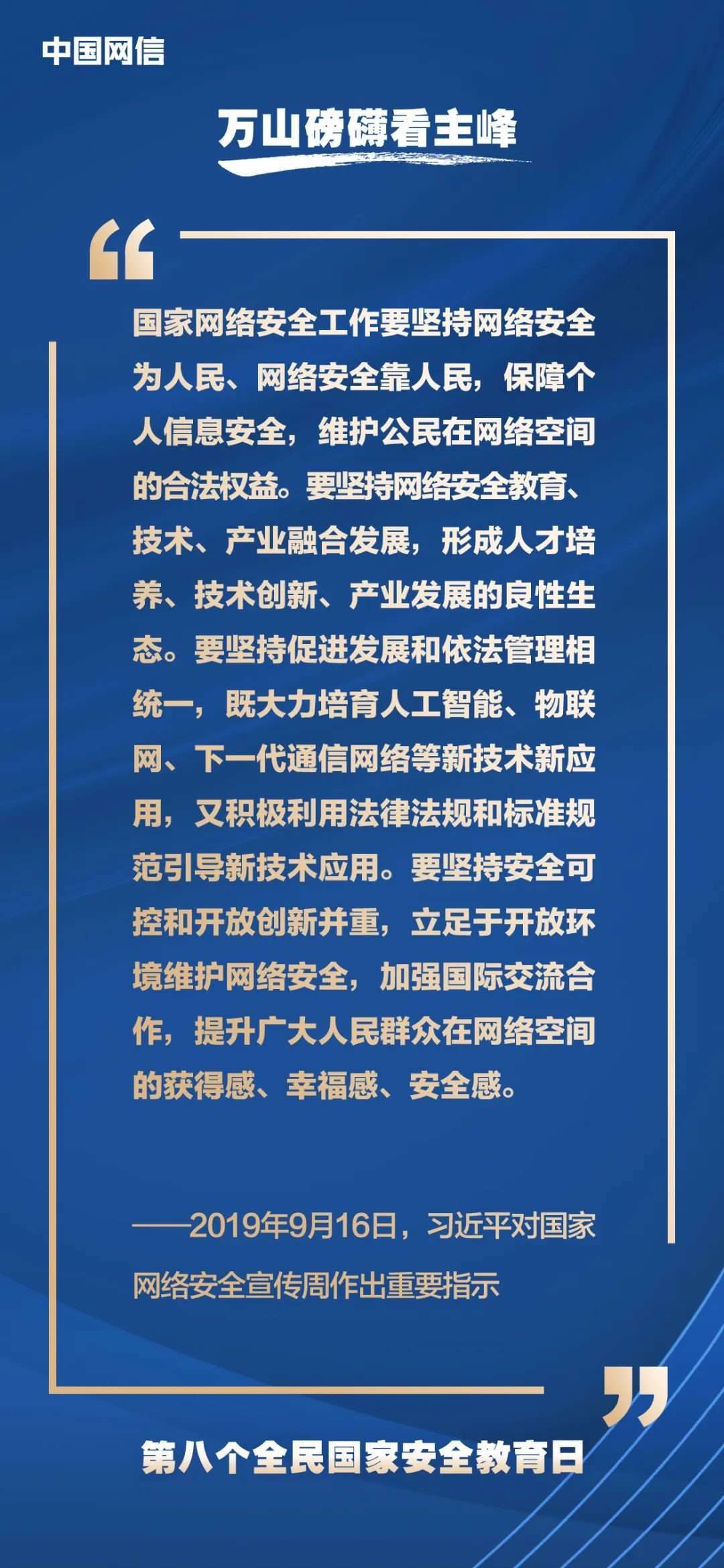 國家安全是安邦定國的重要基石,維護國家安全是全國各族人民根本利益所在。2023年4月15日是第八個全民國家安全教育日,今年的主題是“貫徹總體國家安全觀,增強全民國家安全意識和素養(yǎng),夯實以新安全格局保障新發(fā)展格局的社會基礎”。沒有網(wǎng)絡安全就沒有國家安全,以下摘取習近平總書記關于“網(wǎng)絡安全”的重要論述,與你一起回顧學習。