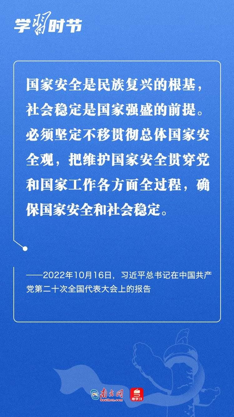 習(xí)近平總書(shū)記在黨的二十大報(bào)告中指出:“國(guó)家安全是民族復(fù)興的根基,社會(huì)穩(wěn)定是國(guó)家強(qiáng)盛的前提?!?月15日是我國(guó)第八個(gè)全民國(guó)家安全教育日。習(xí)近平總書(shū)記在2016年首個(gè)全民國(guó)家安全教育日到來(lái)之際曾強(qiáng)調(diào),實(shí)現(xiàn)中華民族偉大復(fù)興的中國(guó)夢(mèng),保證人民安居樂(lè)業(yè),國(guó)家安全是頭等大事。
