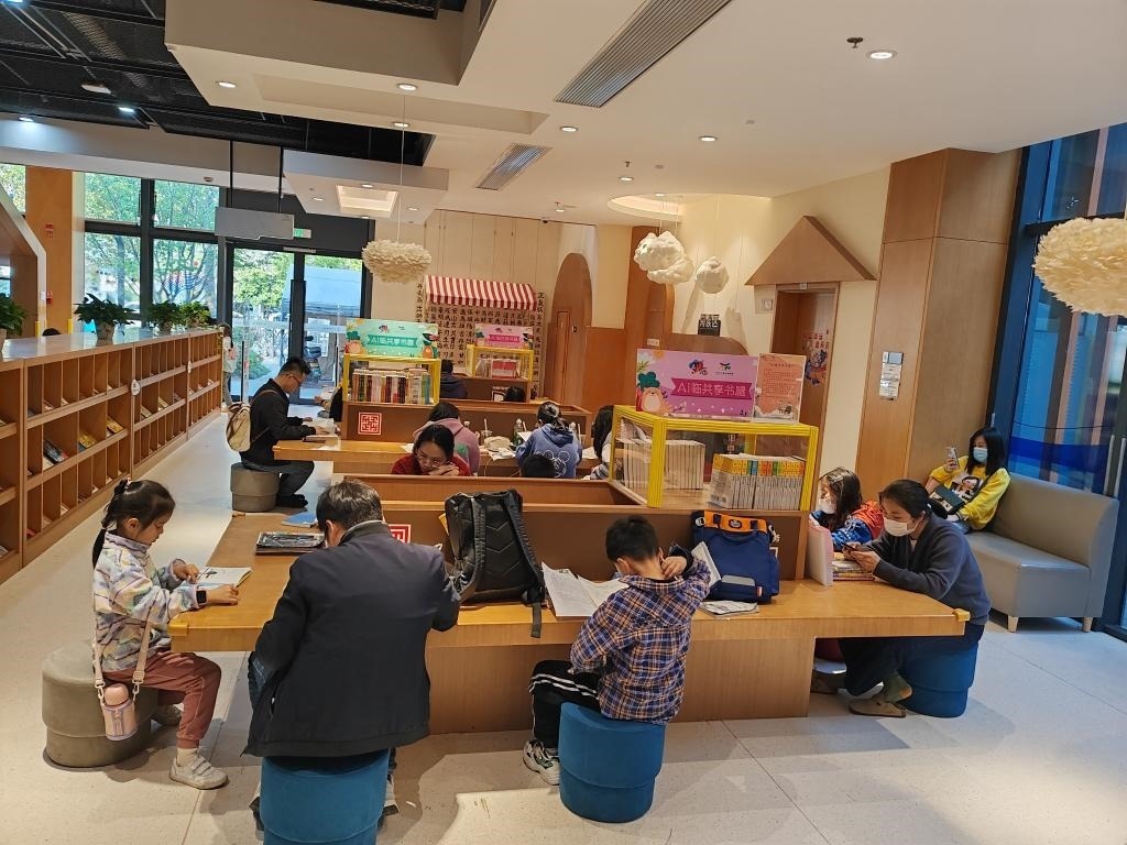 “平均每天有五六百人來這里借書、看書,月均借閱量1.5萬冊。我們下班時間是晚上8點半,但有的讀者還是舍不得走,轉(zhuǎn)戰(zhàn)到旁邊的‘24小時圖書館’?!别^長鮑丹說。