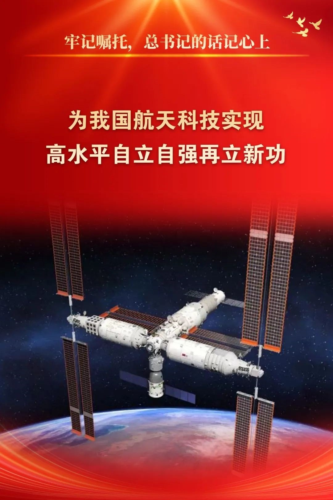 新時代是奮斗者的時代。進(jìn)入新時代,在以習(xí)近平同志為核心的黨中央堅強領(lǐng)導(dǎo)下,在習(xí)近平新時代中國特色社會主義思想指引下,中國航天牢記殷切囑托、錨定強國目標(biāo),自信自強、守正創(chuàng)新,取得了以載人航天、探月探火、衛(wèi)星導(dǎo)航為標(biāo)志的重大成果,不斷創(chuàng)造新的歷史,為推動我國進(jìn)入創(chuàng)新型國家行列、加快實現(xiàn)高水平科技自立自強貢獻(xiàn)了航天智慧、航天方案、航天力量。