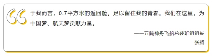 這是張舸在關(guān)艙門前送給航天員的祝福。飛船即將起飛,張舸從塔架撤離,回望一眼飛船,那一刻,責(zé)任感與使命感油然而生:“是所有航天人幾年的辛苦付出,我們才有機會在發(fā)射前同航天員道一句祝福。”