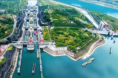 船舶有序通過(guò)三峽雙線五級(jí)船閘(2023年4月24日攝) 鄭家裕攝/本刊