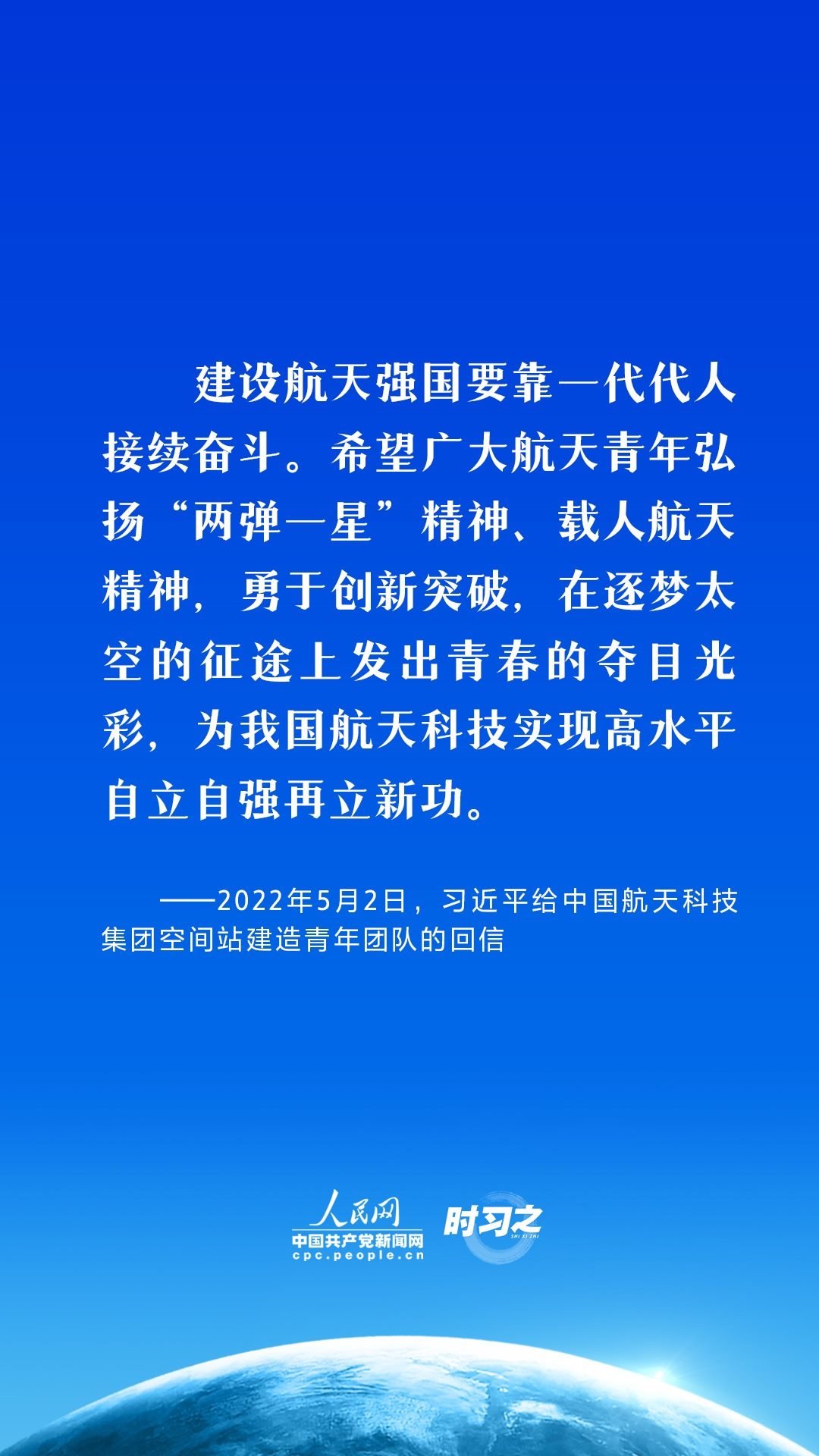 航天夢是強(qiáng)國夢的重要組成部分。黨的十八大以來,習(xí)近平總書記高度重視我國航天事業(yè)發(fā)展,在不同場合,頻頻提及航天精神,并不斷注入新的時代內(nèi)涵,激勵中國航天以勃發(fā)之氣,巡天探宇叩問蒼穹,向著建設(shè)航天強(qiáng)國的目標(biāo)勇毅前行。
