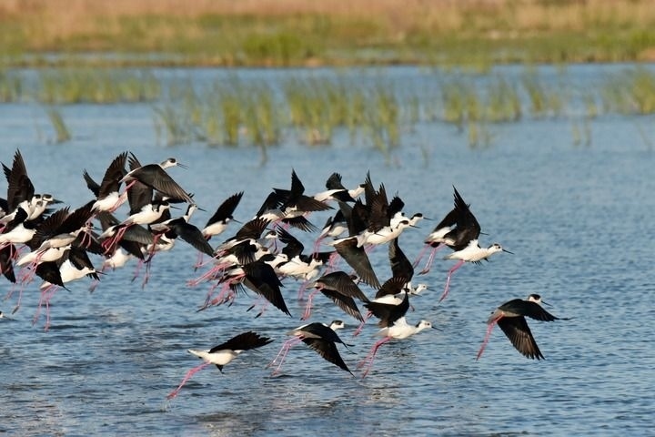 這是在雄安新區(qū)白洋淀拍攝的鳥(niǎo)群(2022年4月15日攝)。新華社發(fā)(周龍山 攝)