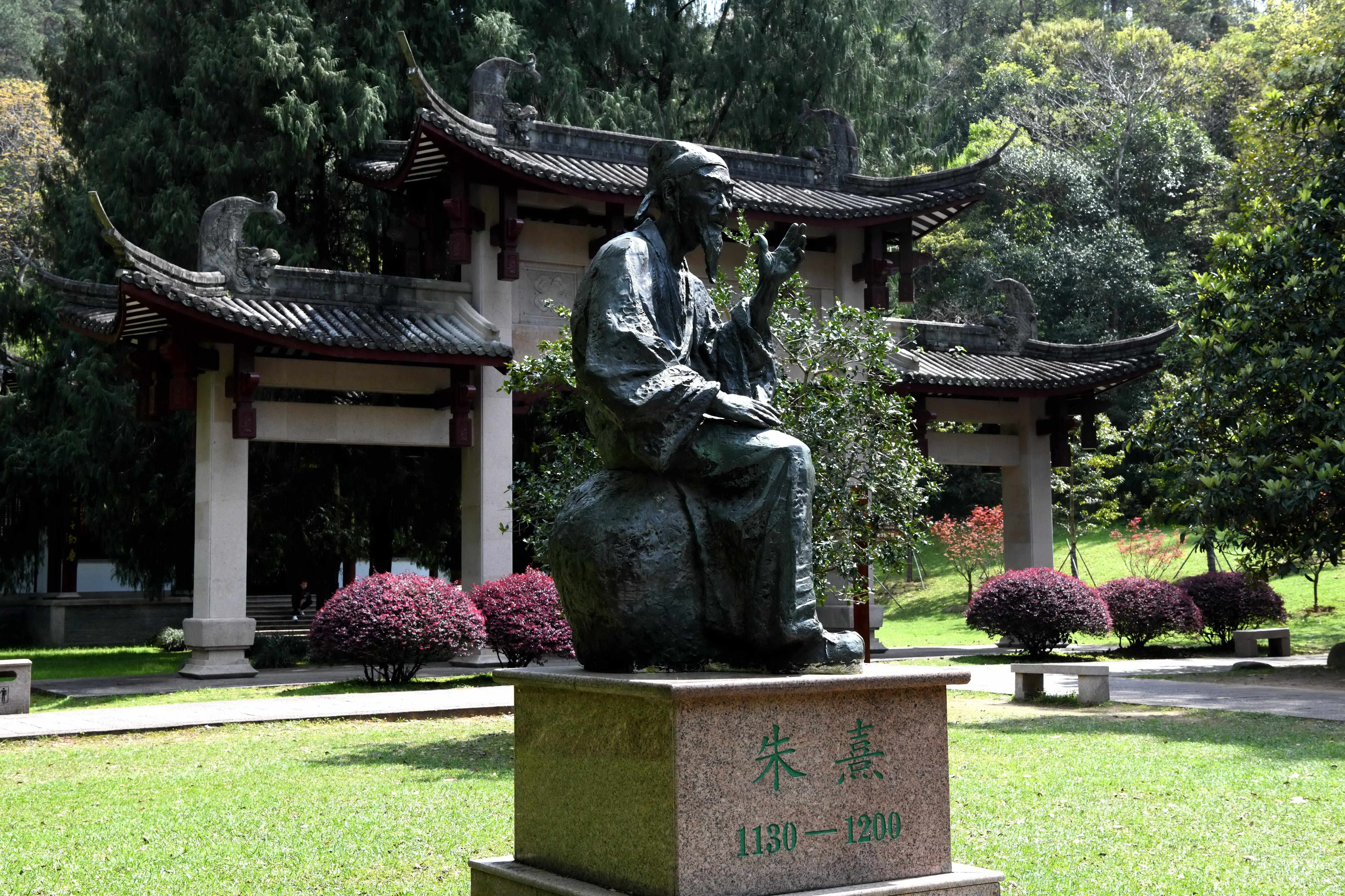 △福建武夷山朱熹園門(mén)口的朱熹雕塑。朱熹園是武夷山世界文化遺產(chǎn)的核心部分,也被譽(yù)為朱子理學(xué)的“搖籃”。