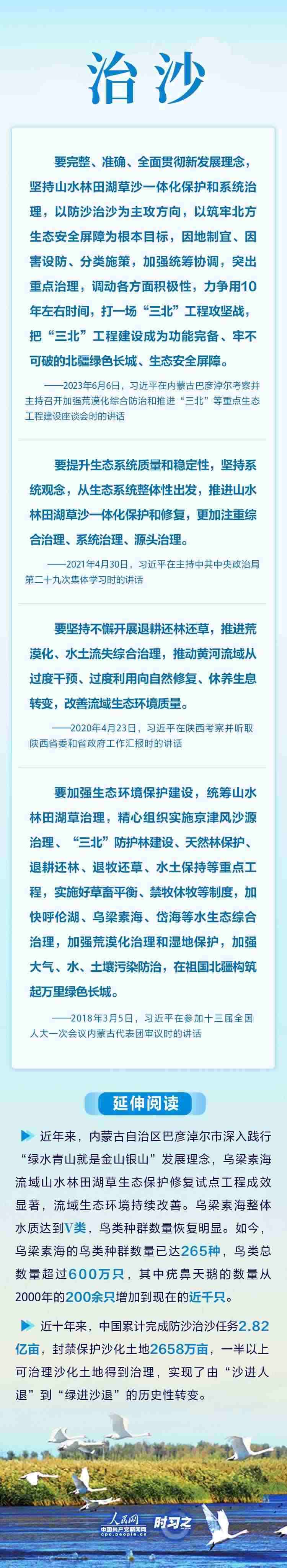 長期以來,在習近平生態(tài)文明思想的指引下,我國堅持走綠色發(fā)展之路,堅持科學防沙治沙,創(chuàng)造了“綠色奇跡”。