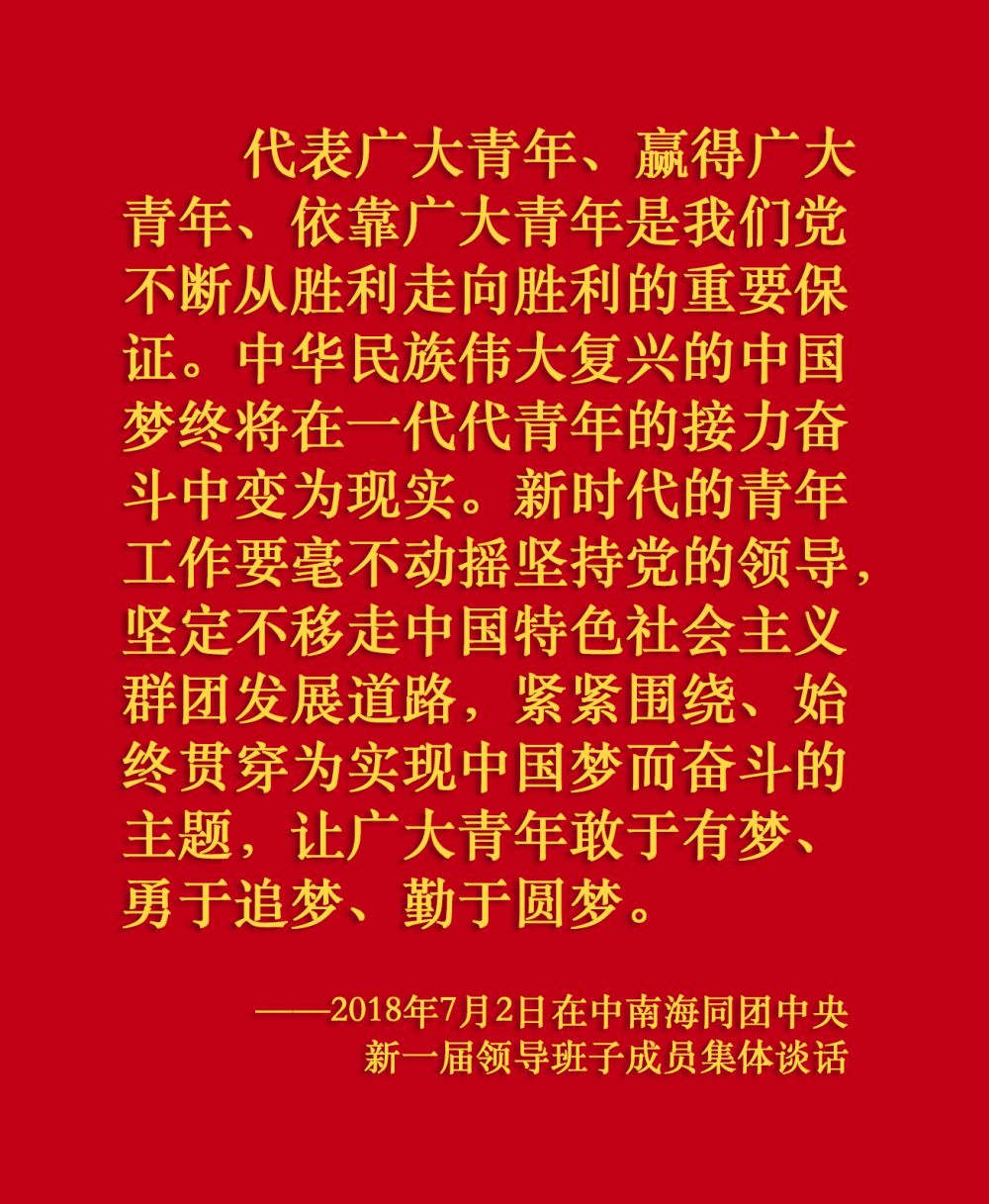 在新的征程上,如何更好把青年團(tuán)結(jié)起來(lái)、組織起來(lái)、動(dòng)員起來(lái),為實(shí)現(xiàn)第二個(gè)百年奮斗目標(biāo)、實(shí)現(xiàn)中華民族偉大復(fù)興的中國(guó)夢(mèng)而奮斗,是新時(shí)代中國(guó)青年運(yùn)動(dòng)和青年工作必須回答的重大課題。