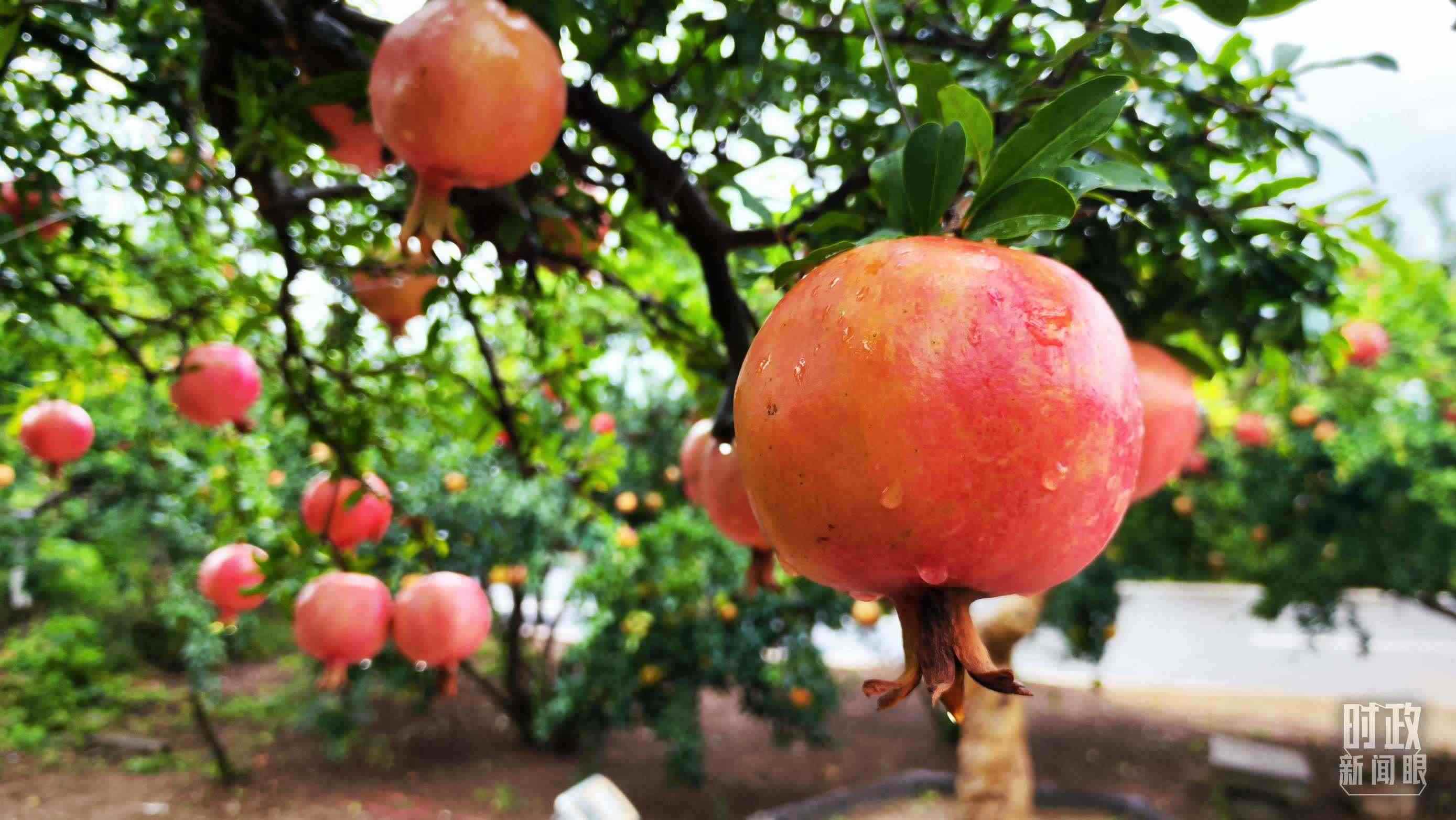 △一場秋雨過后,石榴更顯晶瑩。(總臺(tái)央視記者李輝、范一鳴拍攝)