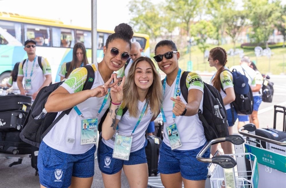 △2023年7月22日,巴西代表團(tuán)成員抵達(dá)中國四川成都大運村后合影。