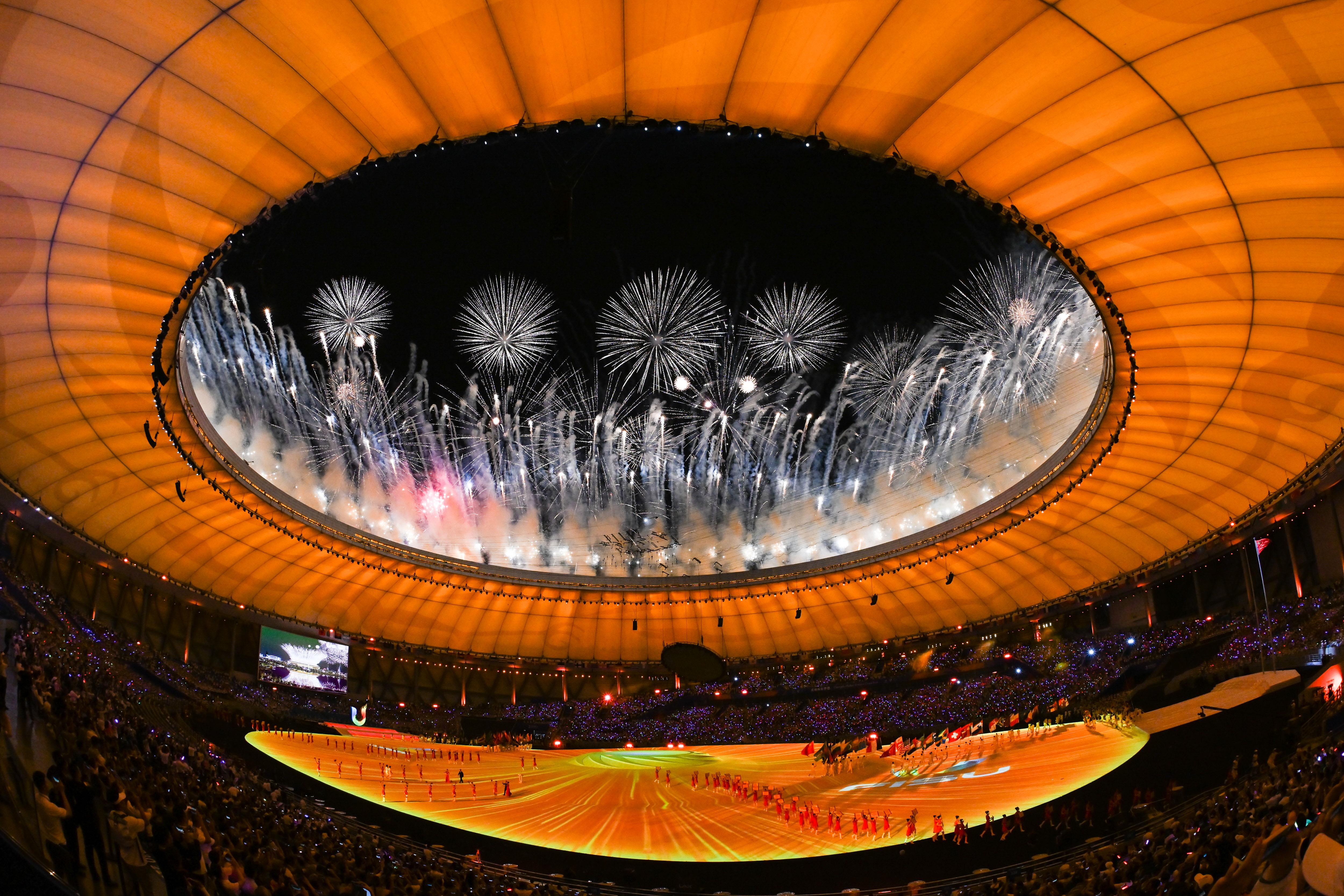 △2023年7月28日,成都大運會開幕式上的煙花表演。