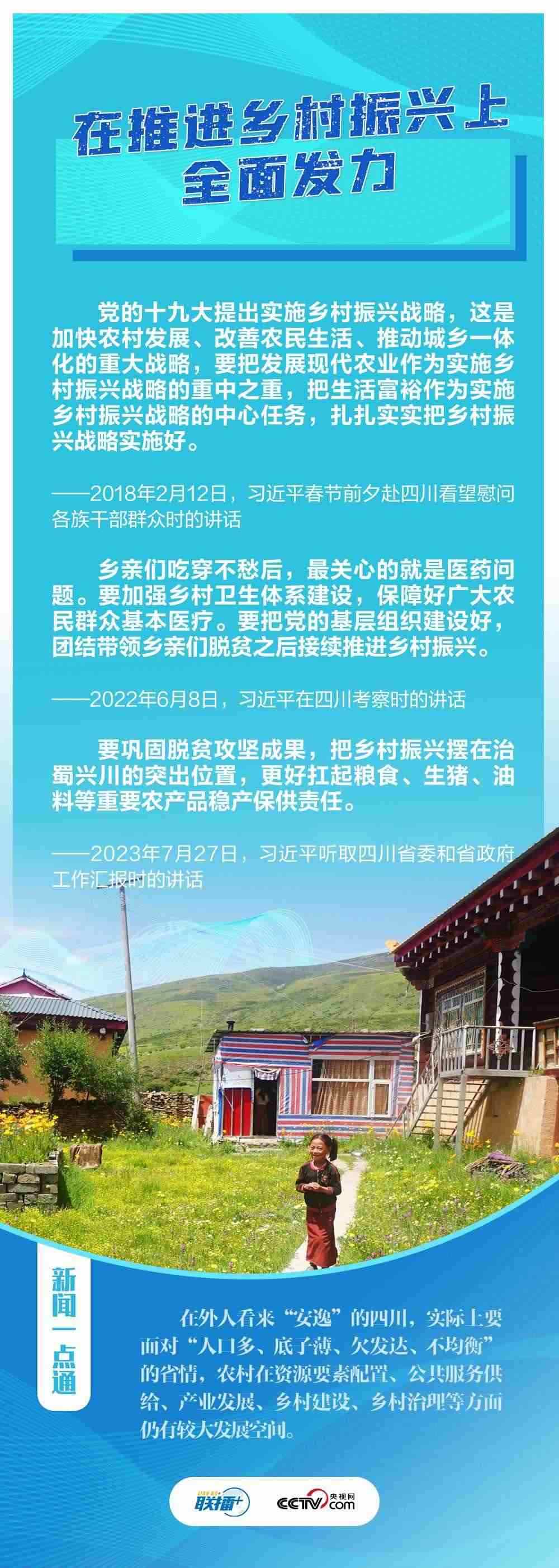 從短板弱項(xiàng)處治蜀,依靠高質(zhì)量發(fā)展興川。黨的十八大以來(lái),總書(shū)記四赴四川,深入蘆山、涼山彝族自治州、阿壩藏族羌族自治州、眉山、宜賓、廣元、德陽(yáng)等地,為新時(shí)代四川發(fā)展指明方向。