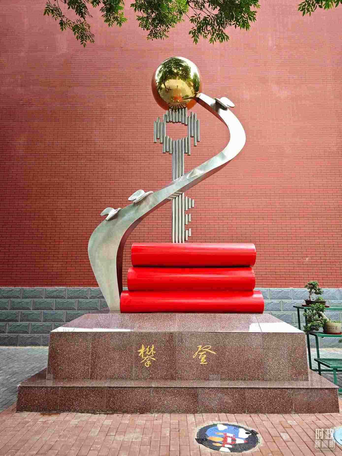 △北京育英學(xué)校內(nèi)的“攀登”雕塑。(總臺央視記者彭漢明拍攝)