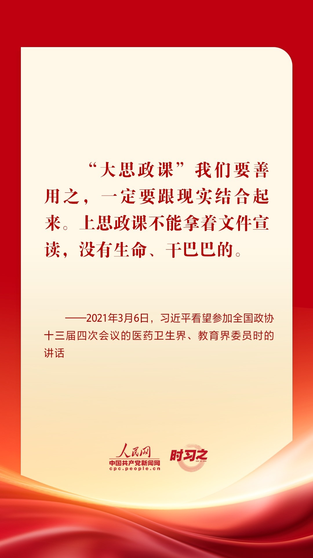 “思政課是落實立德樹人根本任務(wù)的關(guān)鍵課程,思政課作用不可替代,思政課教師隊伍責(zé)任重大?!秉h的十八大以來,從召開全國高校思想政治工作會議、全國教育大會、學(xué)校思想政治理論課教師座談會,到多次赴學(xué)校考察和師生交流談心,習(xí)近平總書記圍繞思政課建設(shè)作出一系列重要論述,為辦好思政課提供根本遵循。