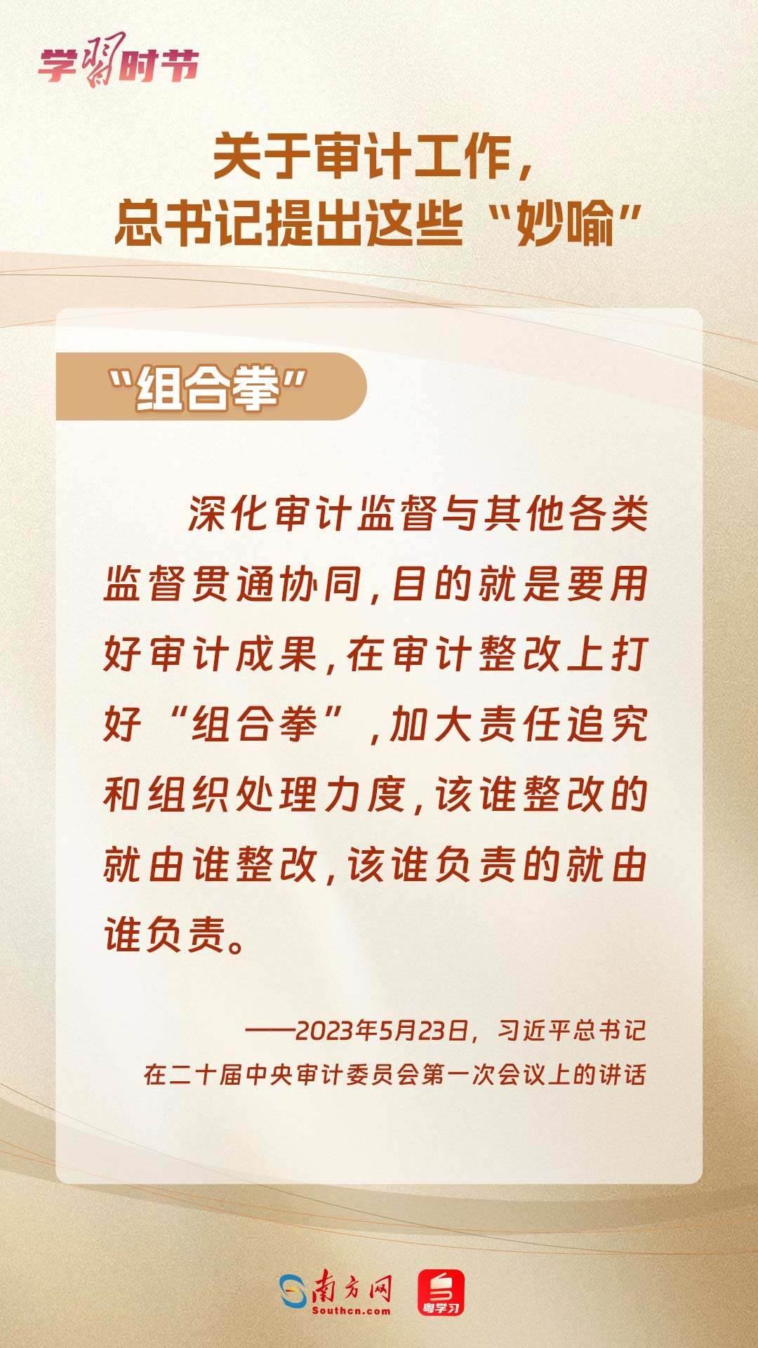 11月1日出版的《求是》雜志刊登了習(xí)近平總書記在二十屆中央審計(jì)委員會(huì)第一次會(huì)議上的講話全文??倳浽谥匾v話中“妙喻”審計(jì)工作,讓我們一同學(xué)習(xí)。