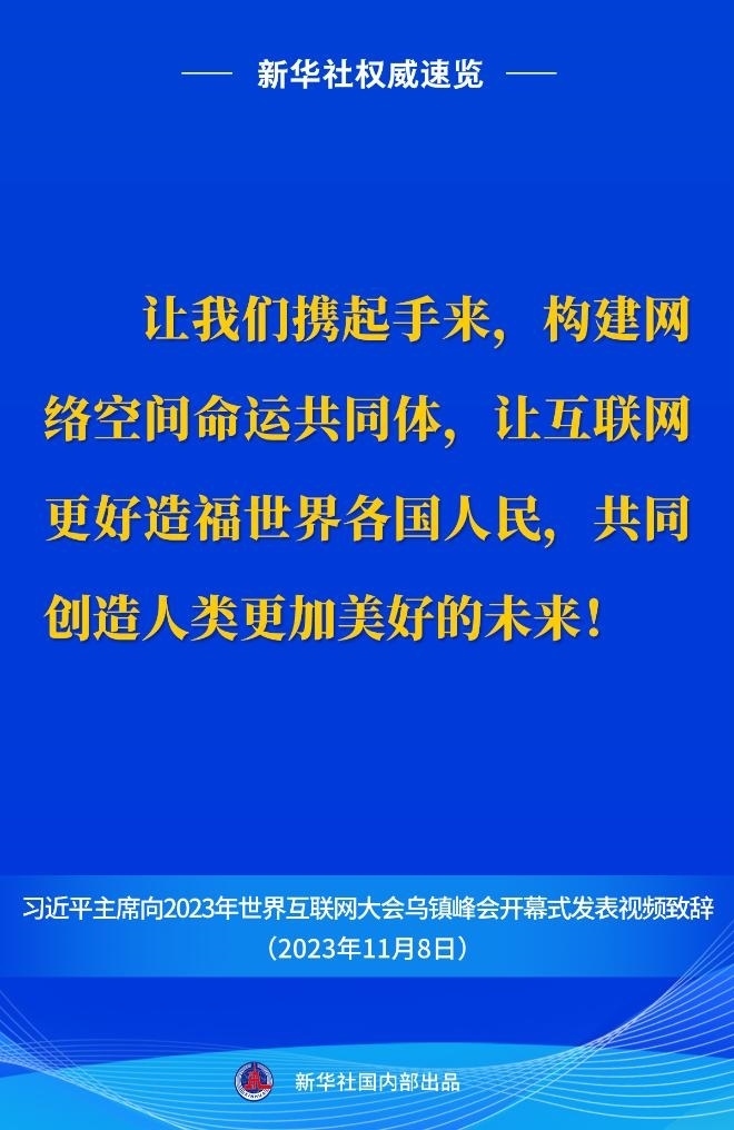 11月8日上午,國家主席習(xí)近平向2023年世界互聯(lián)網(wǎng)大會烏鎮(zhèn)峰會開幕式發(fā)表視頻致辭。一起來看金句。