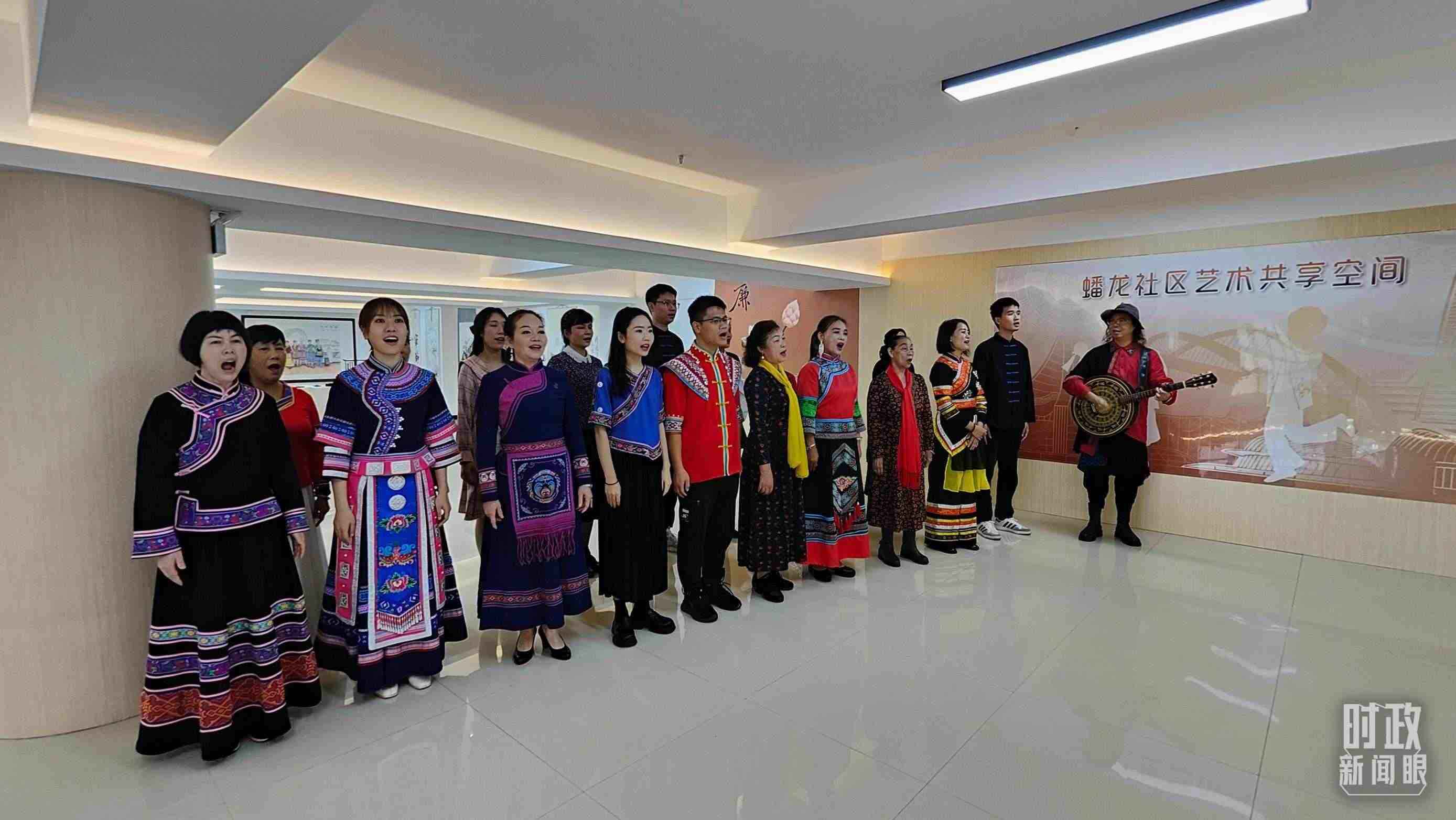 △蟠龍社區(qū)居民演唱民族歌曲《幸福嘹嘹啰》。(總臺央視記者楊立峰拍攝)