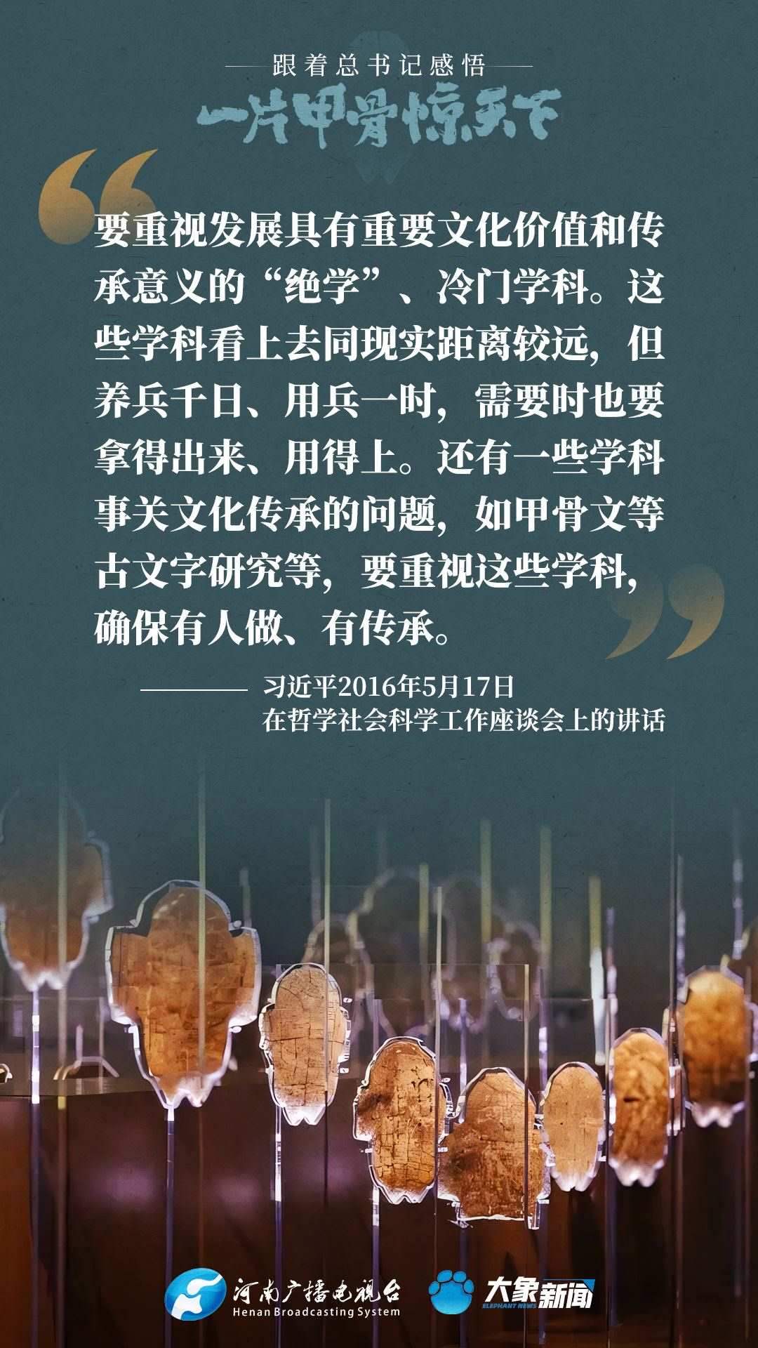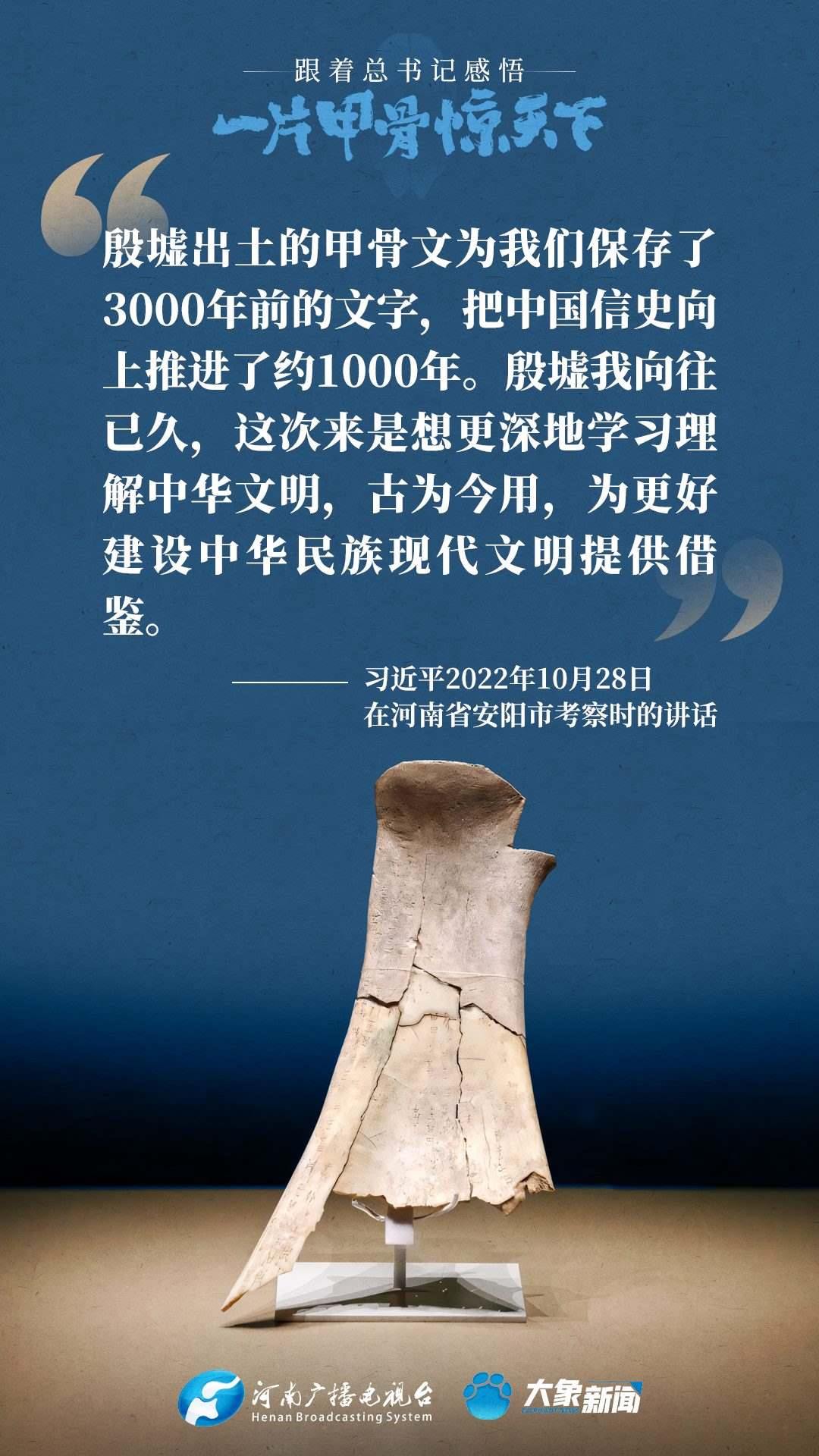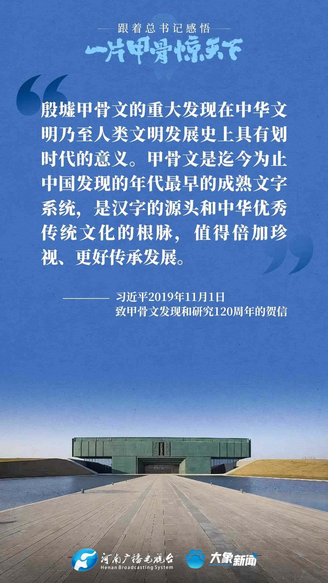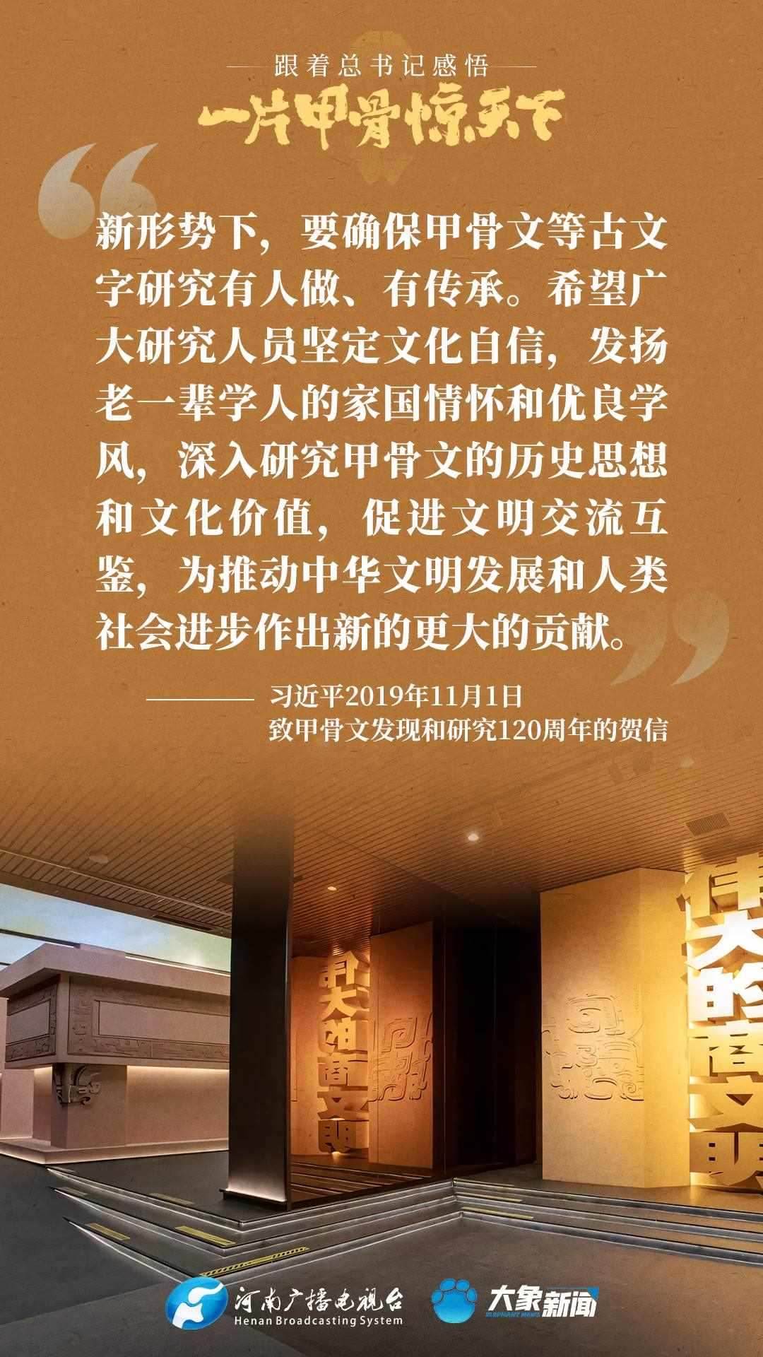黨的十八大以來,習(xí)近平總書記多次就殷墟和甲骨文保護研究利用工作作出重要講話重要指示,為我們堅定文化自信,傳承發(fā)展中華優(yōu)秀傳統(tǒng)文化提供了根本遵循。大象新聞邀您一起回顧、學(xué)習(xí)。