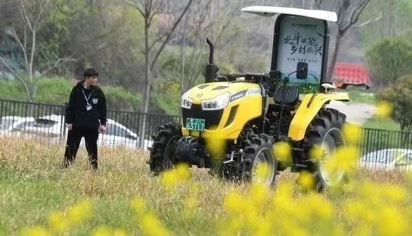 ▲位于光谷北斗大廈的武漢依迅北斗時空技術(shù)股份有限公司園區(qū)內(nèi),安裝了北斗高精度農(nóng)機(jī)自動駕駛終端的拖拉機(jī)正在進(jìn)行測試