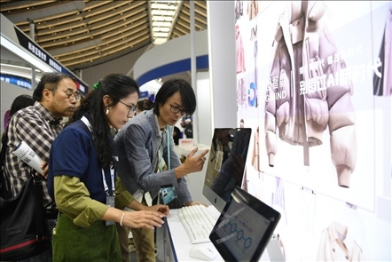 △ 2023年11月9日,“互聯(lián)網(wǎng)之光”博覽會上,人工智能服裝設(shè)計(jì)技術(shù)吸引參觀者駐足體驗(yàn)。