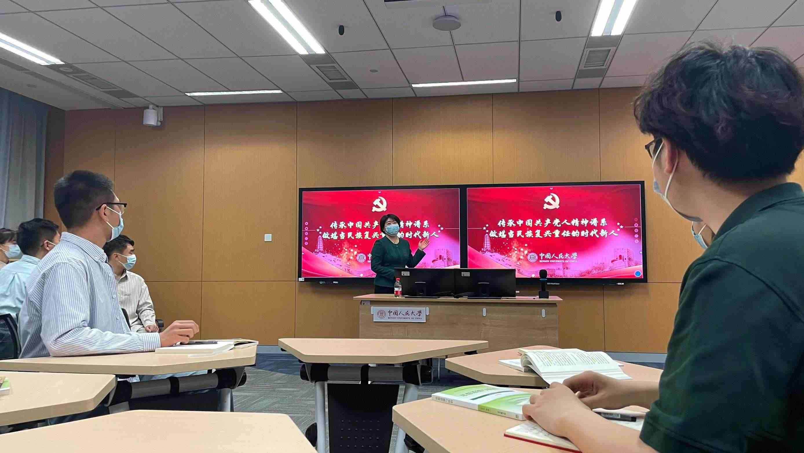 講臺前,授課教師、中國人民大學馬克思主義學院黨委書記王易正在播放視頻《陜北公學》,帶領同學們回顧“中國不會亡,因為有陜公”的紅色歷史,重溫人大人心中的延安精神。