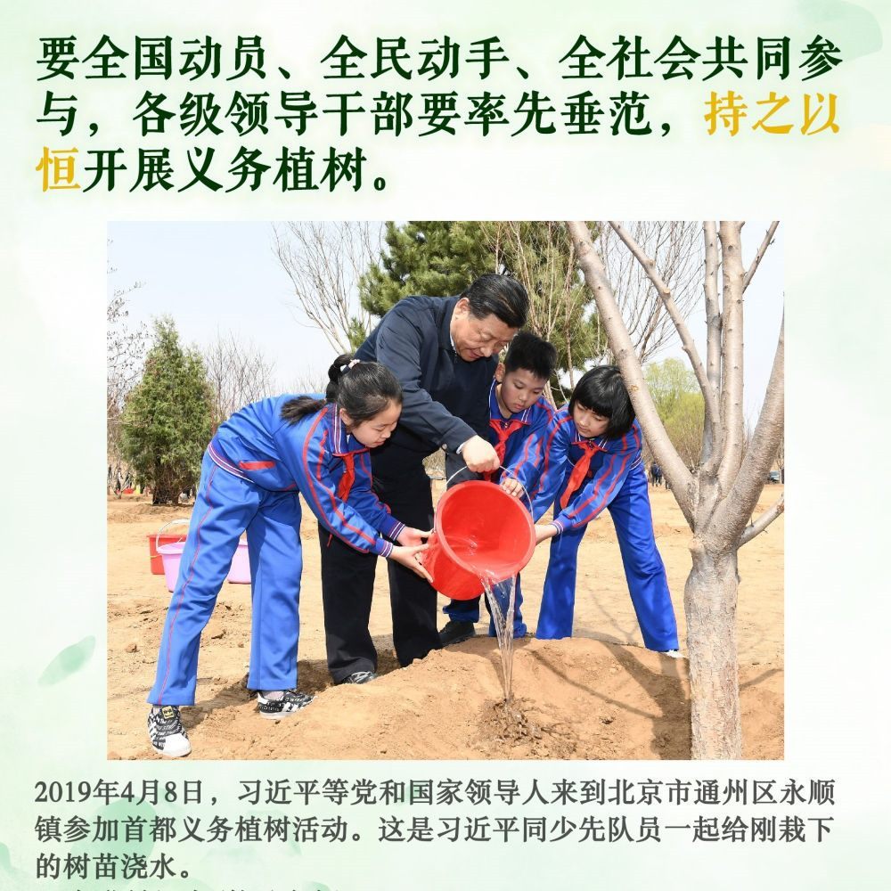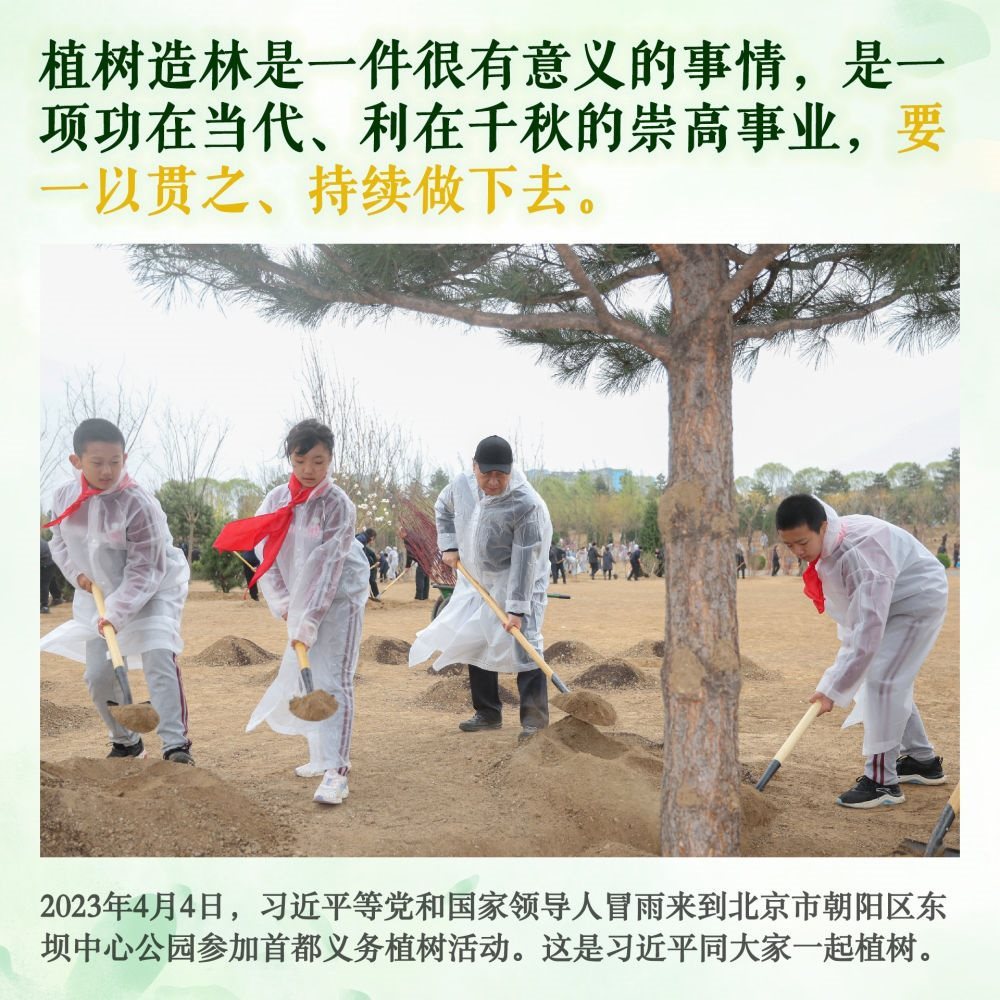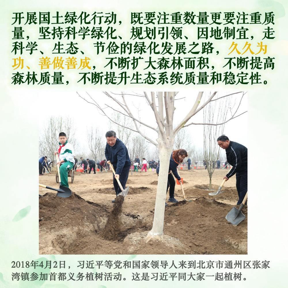 身體力行,持之以恒。此后的11個(gè)春天,無(wú)論晴雨,總書記都抽出時(shí)間加入植綠隊(duì)伍,并對(duì)國(guó)土綠化事業(yè)提出殷殷囑托。堅(jiān)持,是12年來(lái)總書記反復(fù)強(qiáng)調(diào)的關(guān)鍵內(nèi)涵。