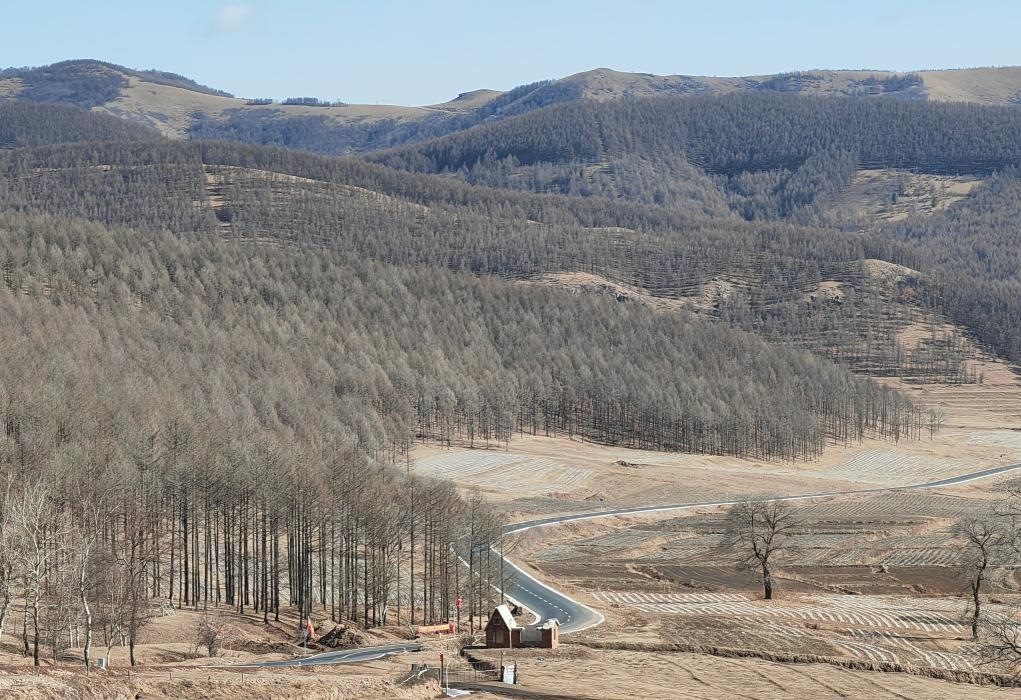 內(nèi)蒙古喀喇沁旗小美林鎮(zhèn)到河北省圍場(chǎng)縣蘭旗卡倫鄉(xiāng)的公路(2024年3月29日攝)。新華社記者 魏婧宇 攝