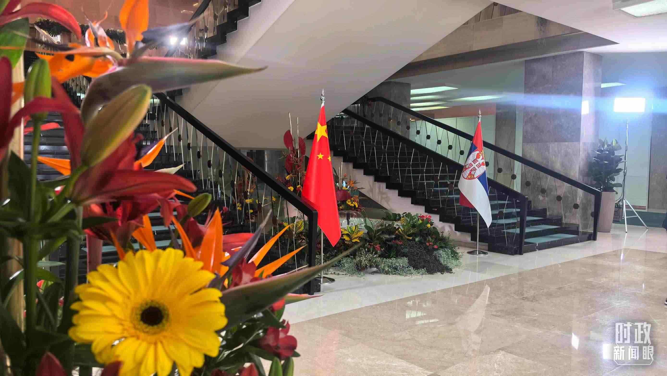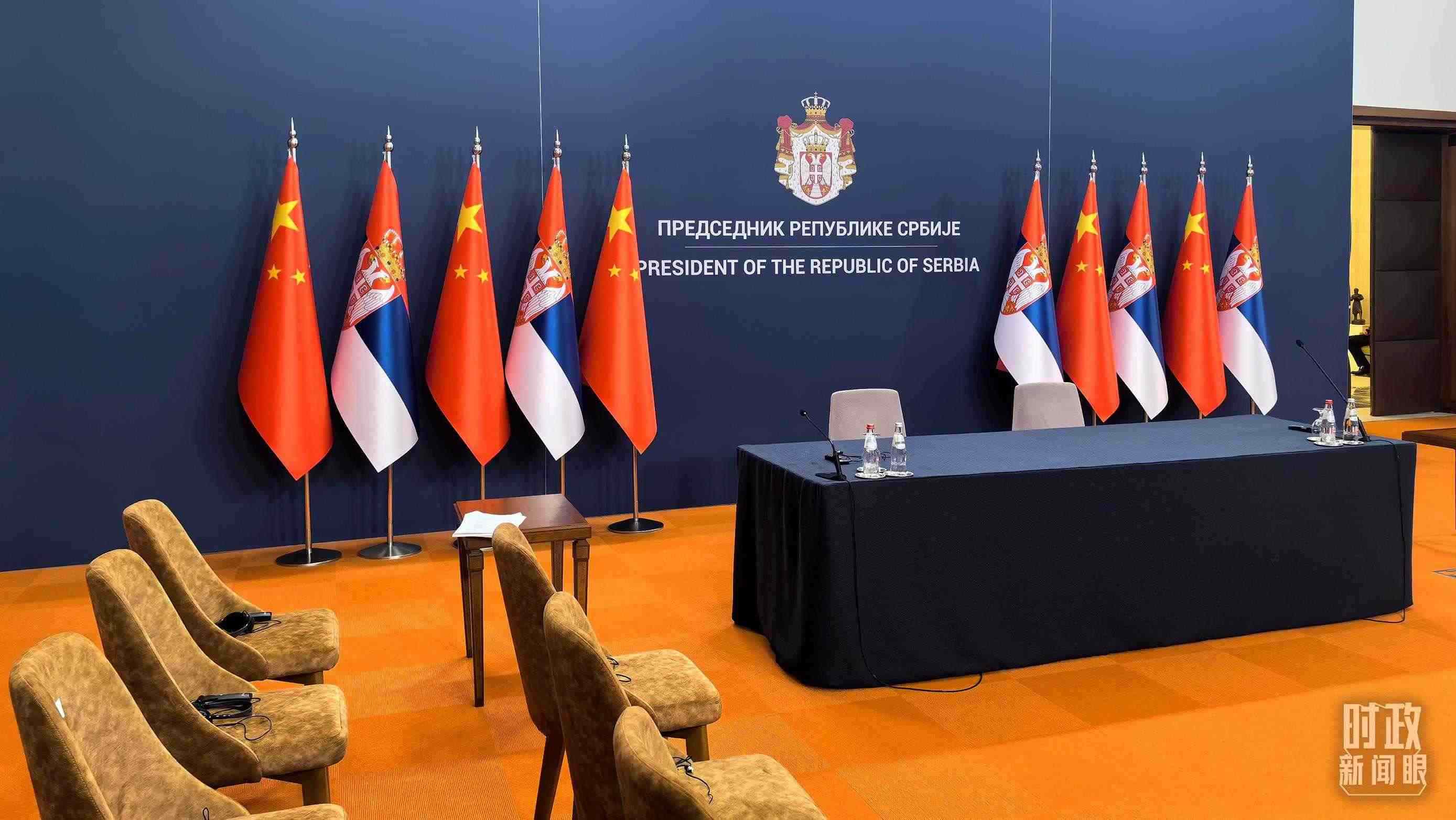 △5月8日上午,習(xí)主席同武契奇總統(tǒng)舉行大范圍會談,這是會談開始前的現(xiàn)場。(總臺央視記者張洛嘉拍攝)