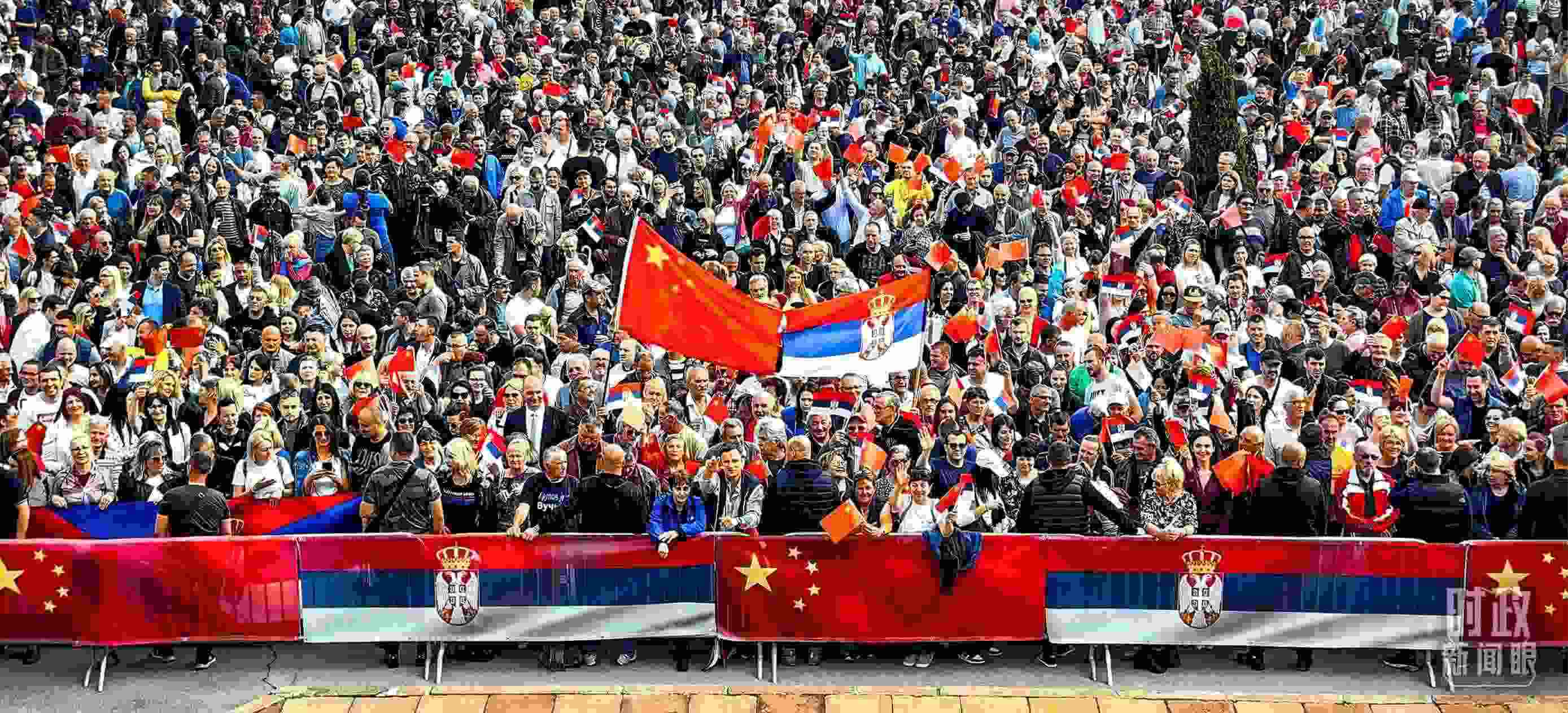 △一萬五千名塞爾維亞民眾齊聚塞爾維亞大廈廣場(chǎng),熱烈歡迎習(xí)主席到訪。(總臺(tái)央視記者段德文拍攝)