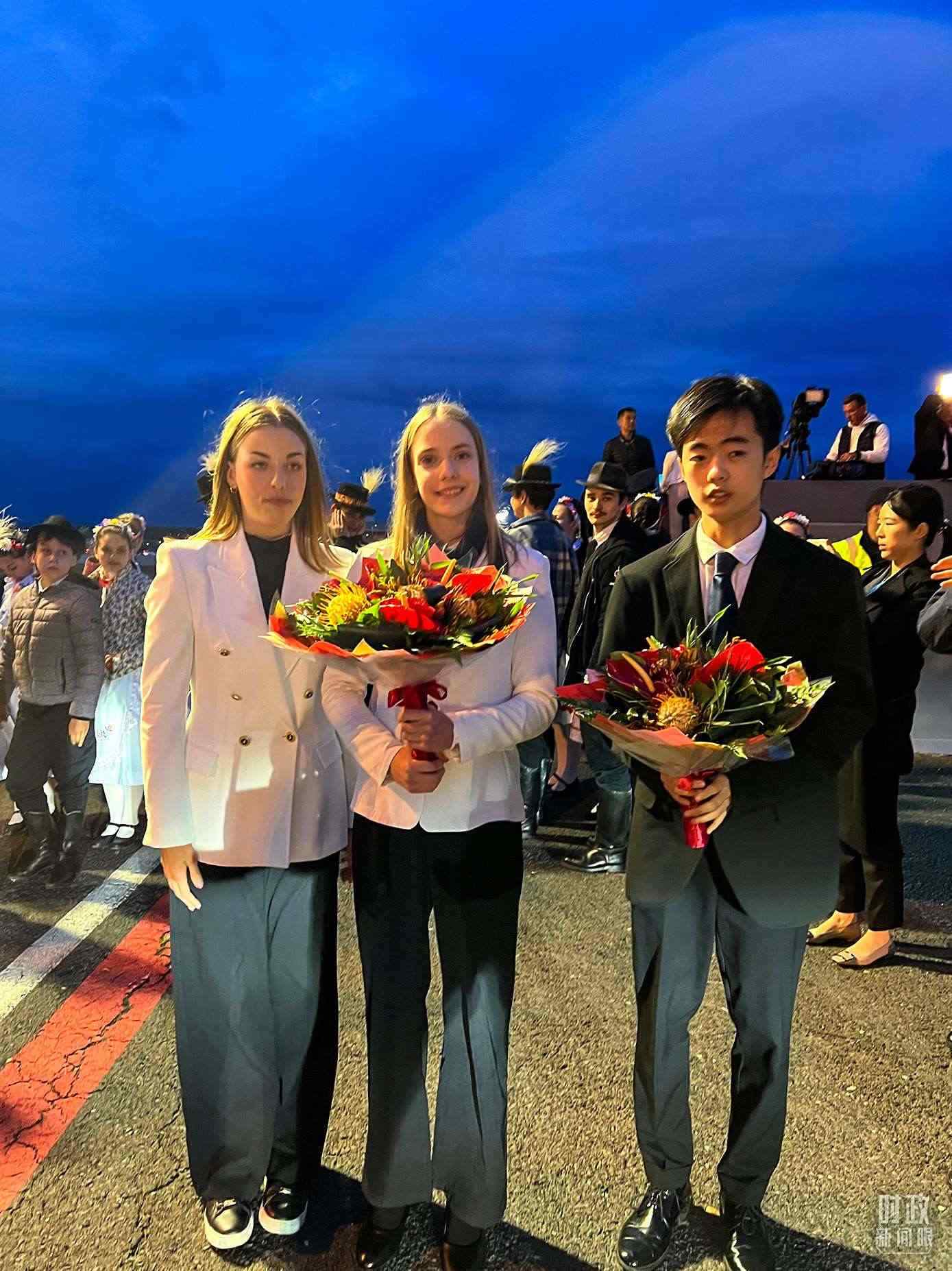 △15年前給習(xí)近平獻(xiàn)花的女孩童滿(左一)。(總臺央視記者石偉明拍攝)