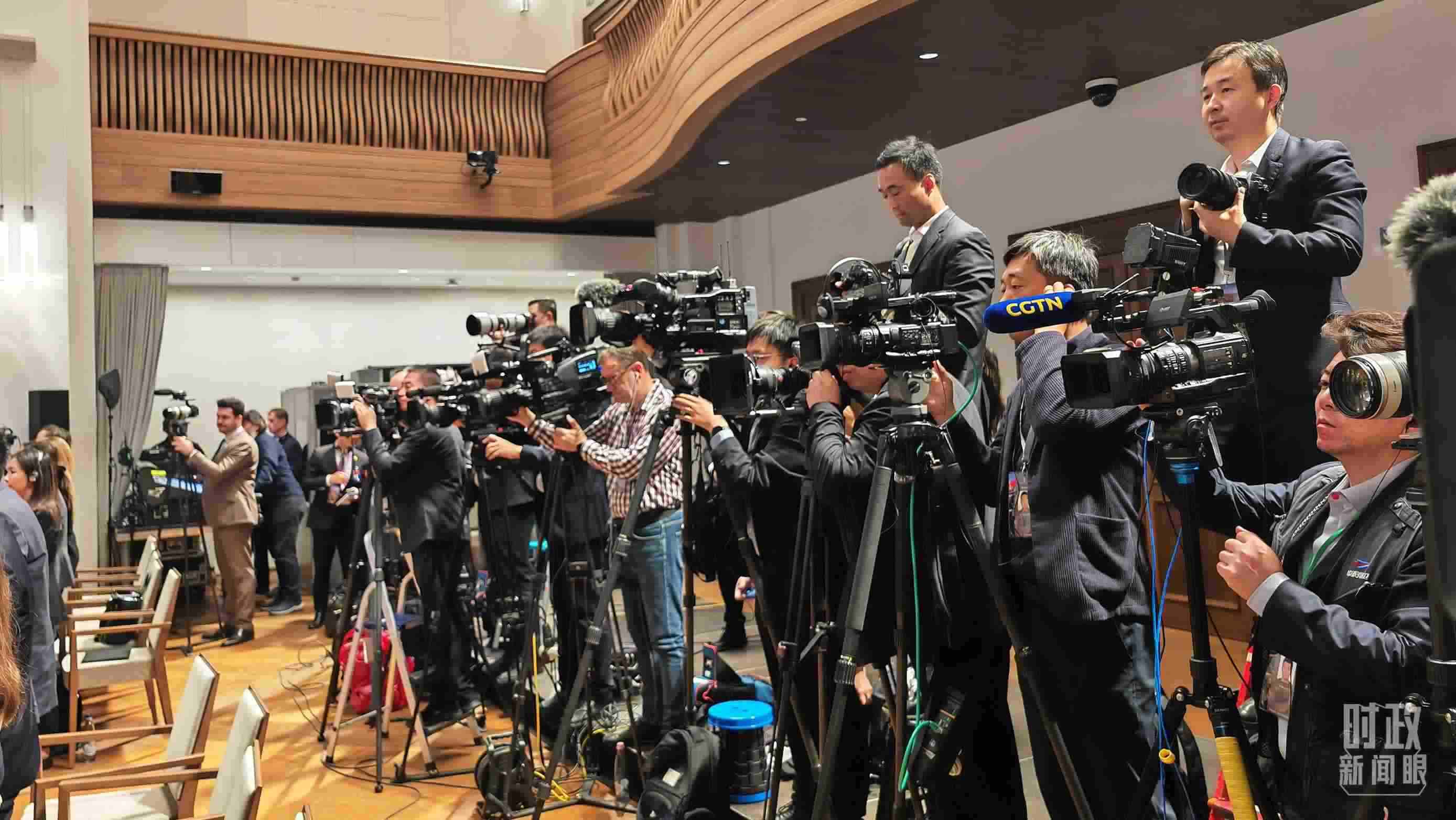 △習(xí)主席同歐爾班總理共同會見記者,現(xiàn)場記者云集。(總臺央廣記者馬喆拍攝)