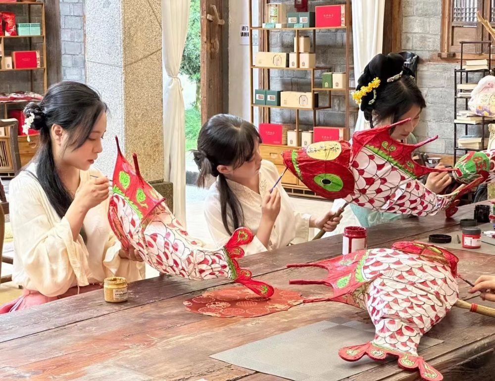 游客在西溪南村體驗(yàn)制作魚(yú)燈。(受訪者供圖)