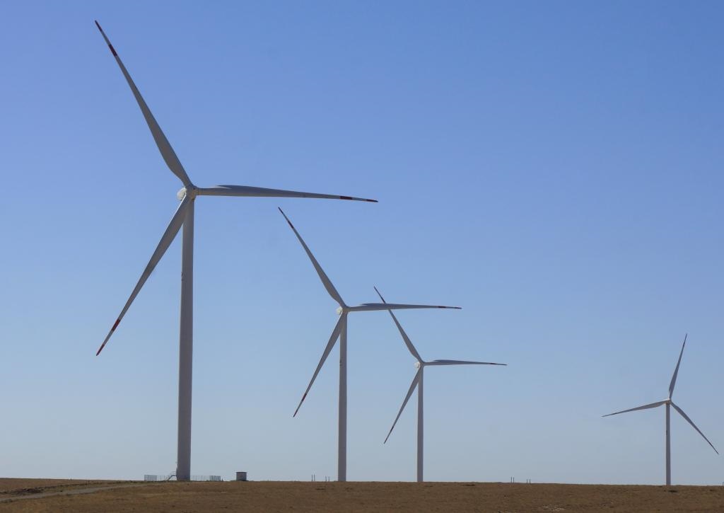 這是2022年9月13日拍攝的哈薩克斯坦札納塔斯風(fēng)電場(chǎng)風(fēng)機(jī)。札納塔斯100兆瓦風(fēng)電項(xiàng)目由中國電力國際有限公司和哈薩克斯坦維索爾投資公司共同投資,是中哈合作的中亞最大風(fēng)電項(xiàng)目。新華社發(fā)(德米特里·瓦西連科攝)