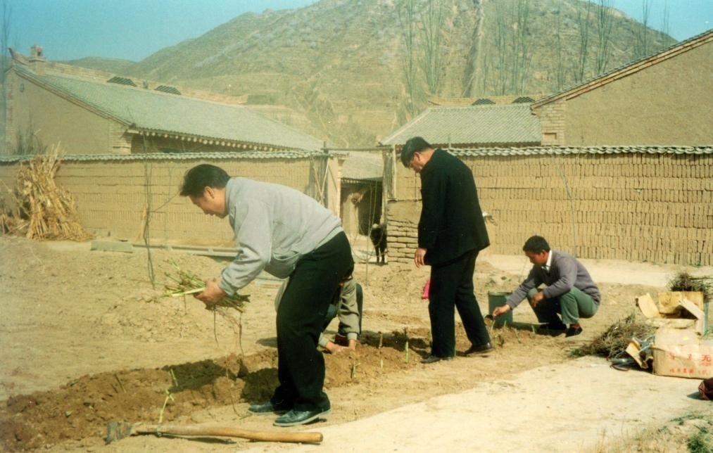 1997年4月,林占熺(左一)帶領(lǐng)科研團(tuán)隊首次在寧夏彭陽縣試種菌草。新華社發(fā)