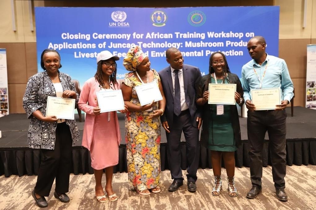 8月初,在非洲地區(qū)菌草技術(shù)培訓(xùn)班舉辦期間,聯(lián)合國官員和使團(tuán)代表團(tuán)專程赴盧旺達(dá)考察菌草技術(shù)和產(chǎn)業(yè)在非洲地區(qū)的發(fā)展?!拔液芨吲d同其他聯(lián)合國官員一起,親眼見證菌草技術(shù)以實際行動造福民眾?!甭?lián)合國秘書長辦公室主任考特尼·拉特雷說,菌草技術(shù)具有“可負(fù)擔(dān)”的突出優(yōu)勢,“對非洲大陸所有發(fā)展中國家很有價值、非常適用”。