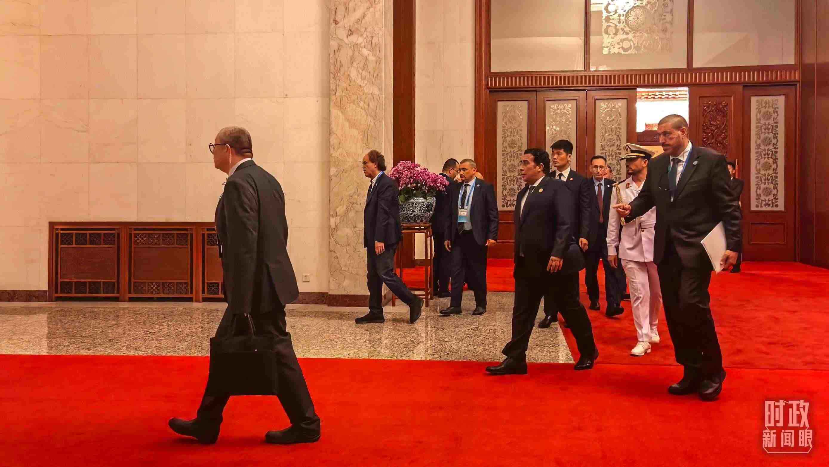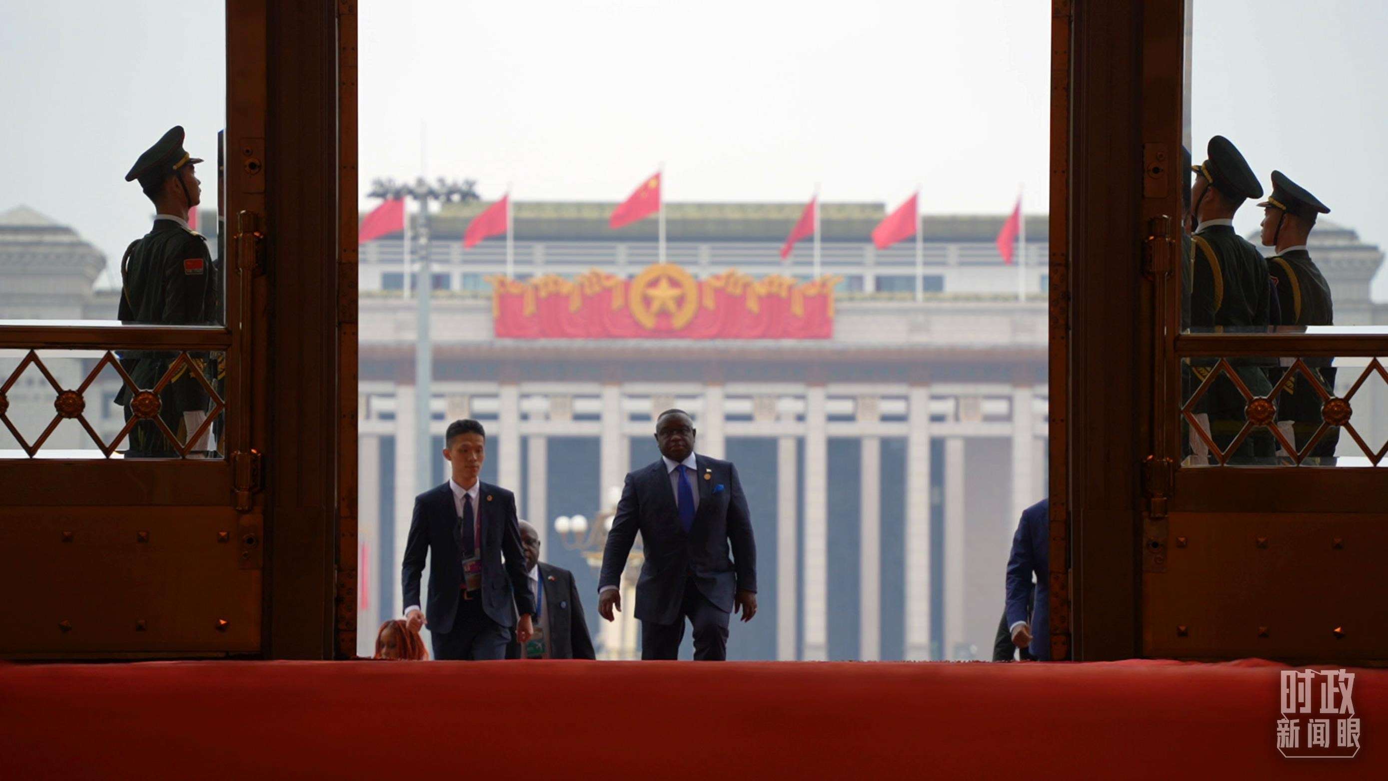 △非洲國家領(lǐng)導(dǎo)人步入人民大會堂。(總臺央視記者趙怡彬拍攝)