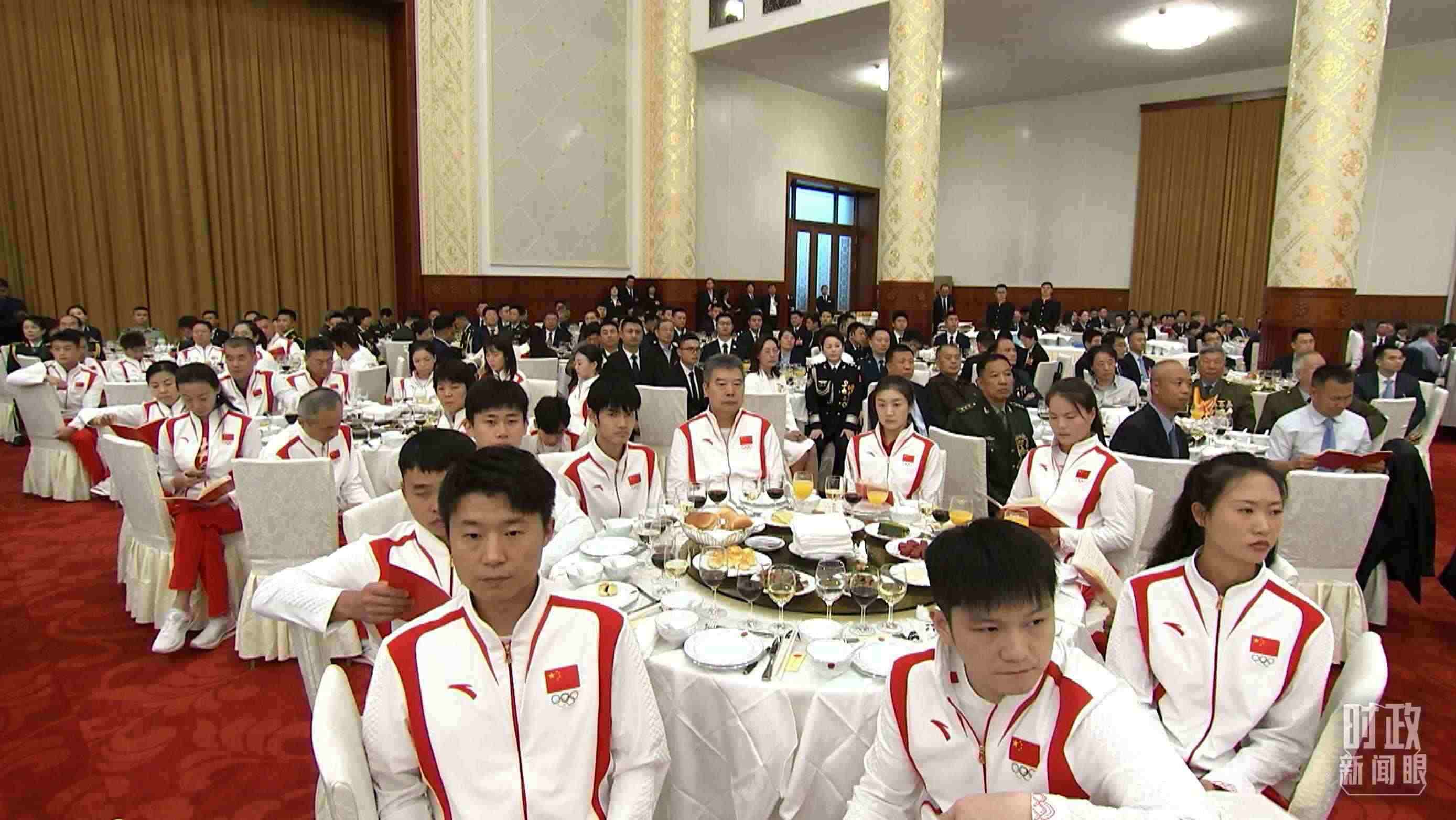 今年,“共和國勛章”“友誼勛章”“七一勛章”“八一勛章”和國家榮譽稱號獲得者代表,巴黎奧運會、殘奧會中國體育代表團代表等應邀參加了招待會。