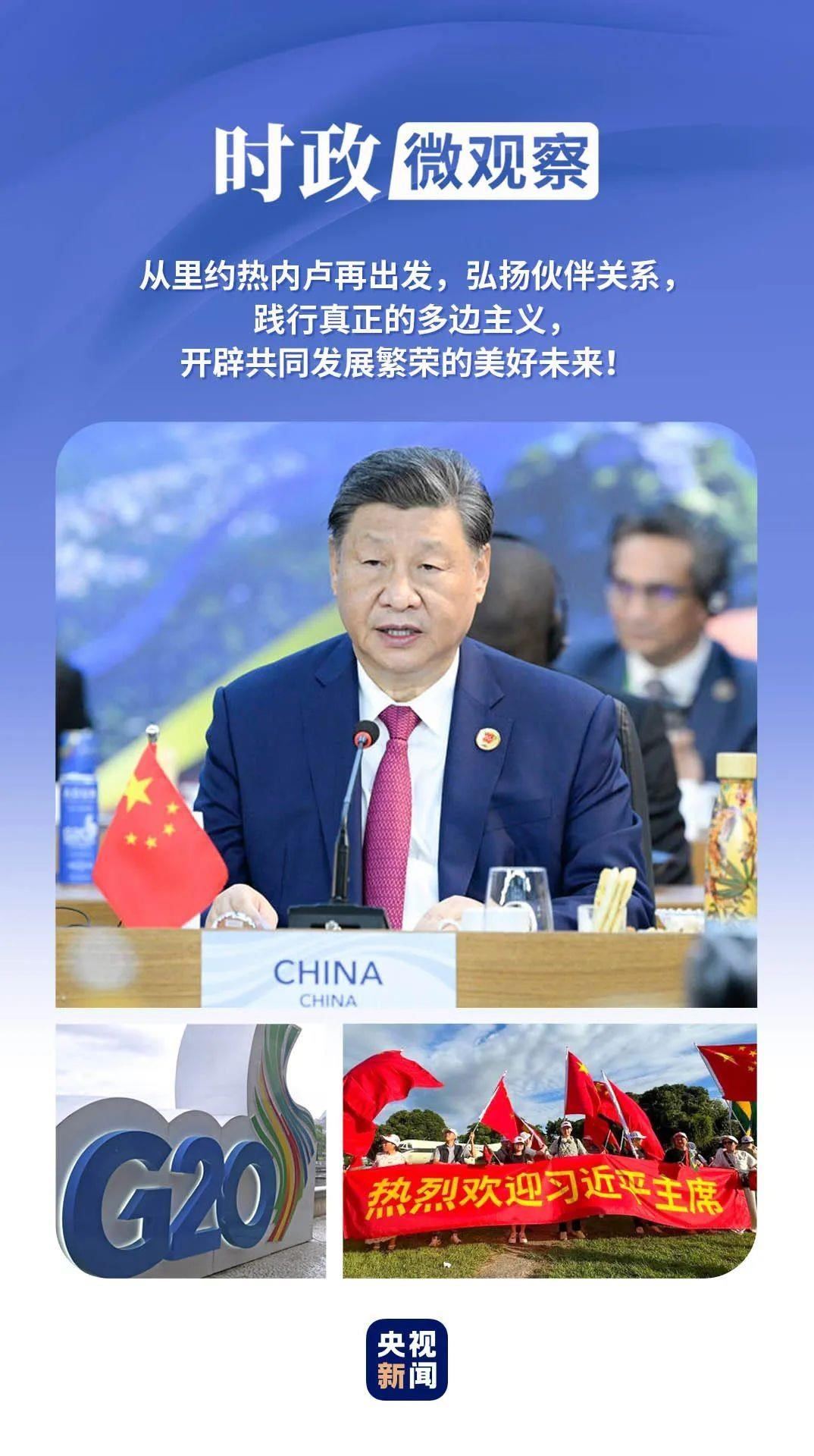 在此次里約熱內(nèi)盧峰會(huì)上,習(xí)近平主席倡議二十國集團(tuán)繼續(xù)做完善全球治理、推動(dòng)歷史進(jìn)步的力量,并提出完善全球經(jīng)濟(jì)治理、金融治理、貿(mào)易治理、數(shù)字治理、生態(tài)治理、安全治理等中國方案。