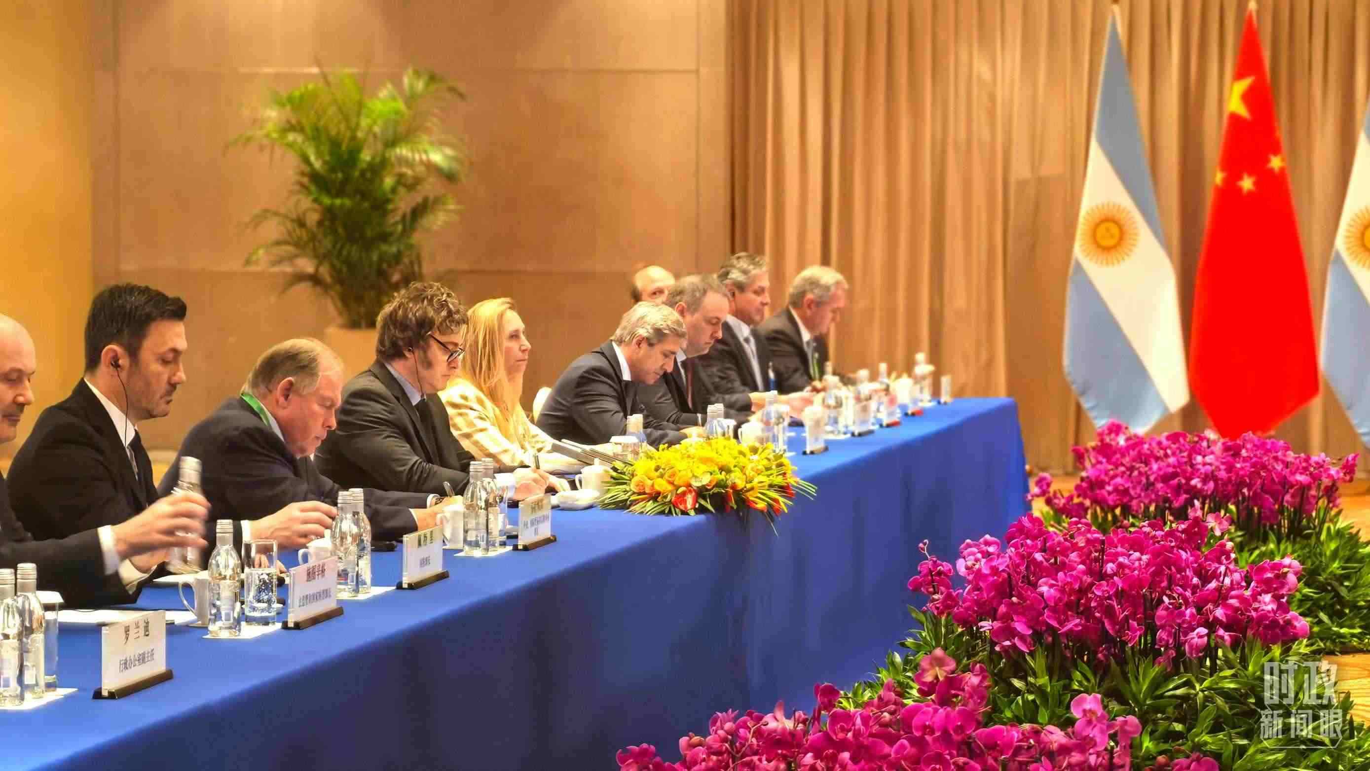 △習主席會見阿根廷總統(tǒng)米萊現(xiàn)場。(總臺央廣記者潘毅拍攝)