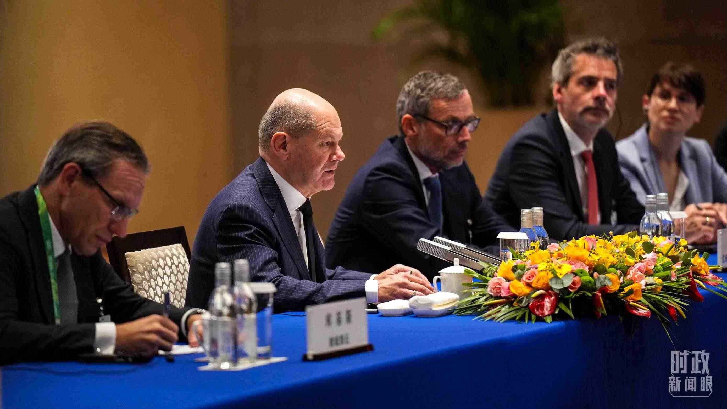 △習主席會見德國總理朔爾茨現(xiàn)場。(總臺記者李晉拍攝)