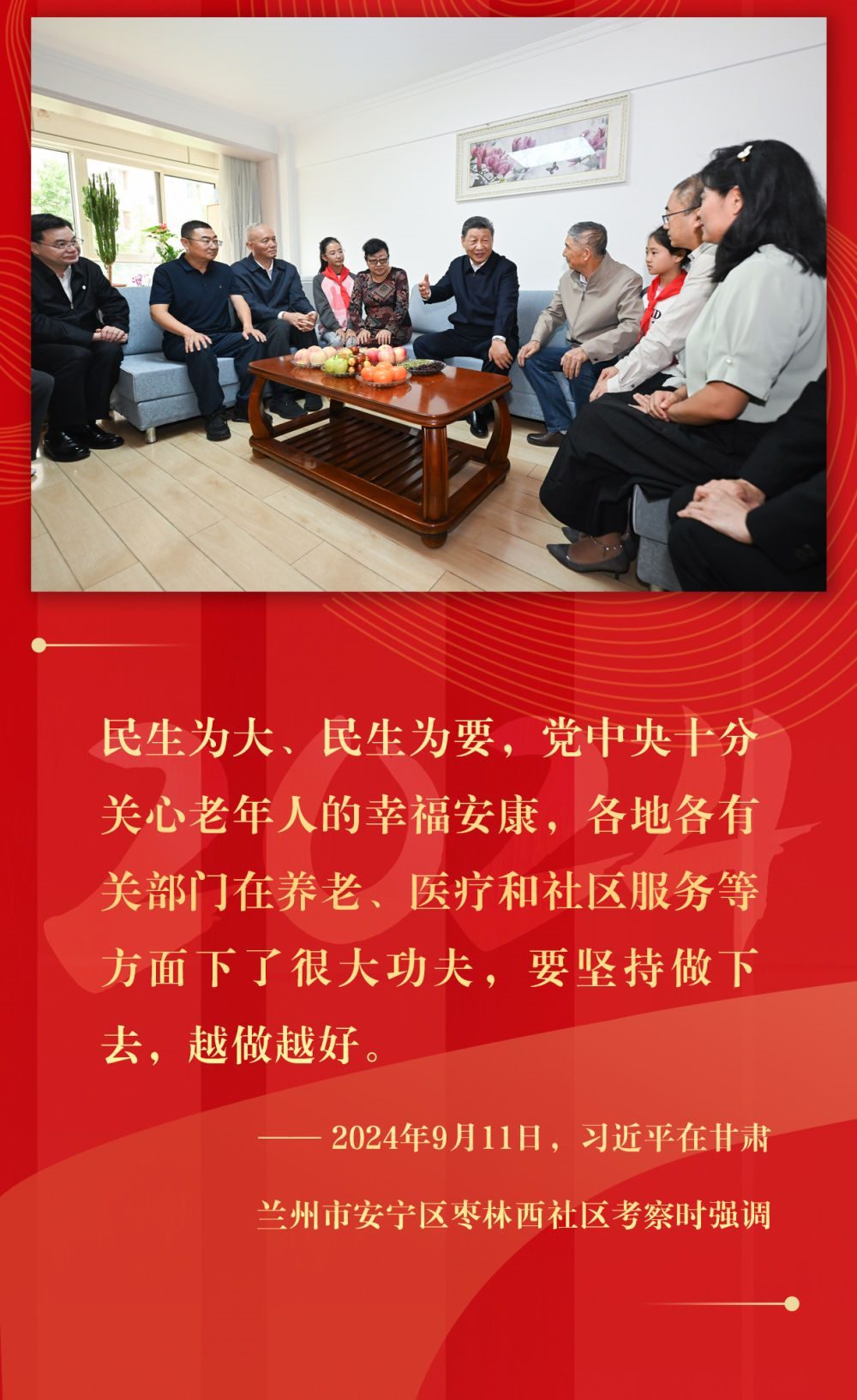 悠悠民生事,枝葉總關情。2024年,總書記考察步履不停,時刻記掛群眾冷暖:災區(qū)災后重建工作、老舊小區(qū)改造、解決“急難愁盼”、服務“一老一小”……人民至上的理念和行動,溫暖著百姓的心。