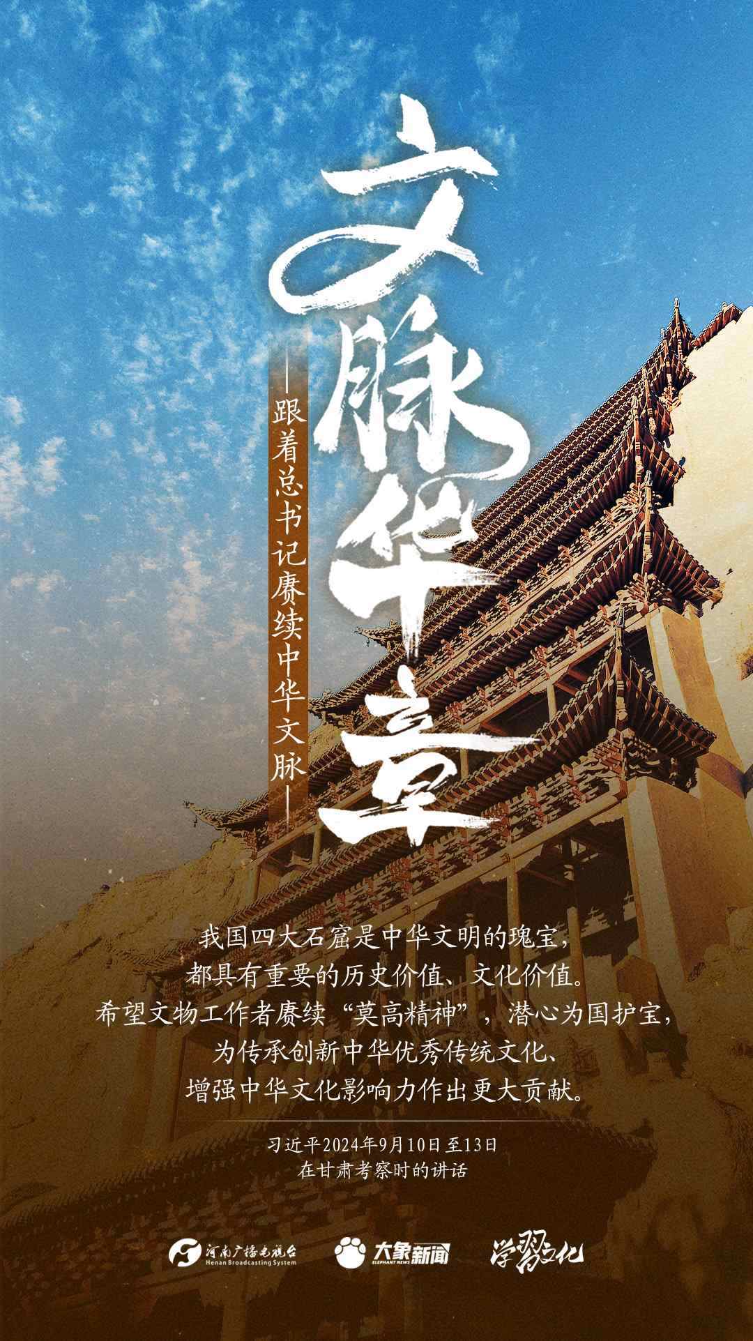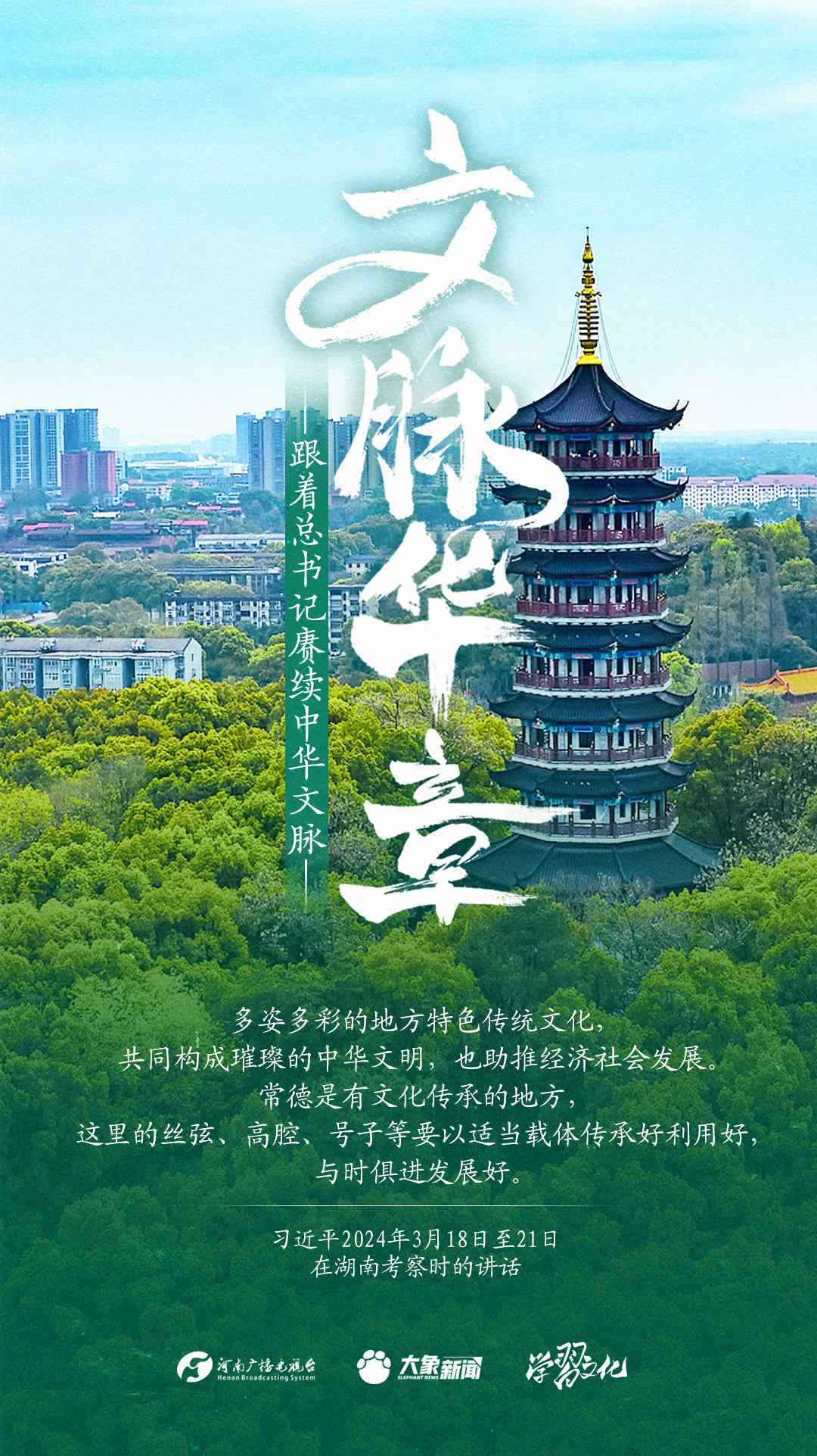 習(xí)近平總書(shū)記高度重視中華優(yōu)秀傳統(tǒng)文化的繼承和弘揚(yáng)。2024年,總書(shū)記一如既往,念茲在茲。在赴地方考察、主持召開(kāi)重要會(huì)議等眾多場(chǎng)合,多次對(duì)傳承發(fā)展中華優(yōu)秀傳統(tǒng)文化作出重要講話重要指示。大象新聞邀您一起,跟著總書(shū)記賡續(xù)中華文脈,推動(dòng)中華優(yōu)秀傳統(tǒng)文化創(chuàng)造性轉(zhuǎn)化和創(chuàng)新性發(fā)展,在新的起點(diǎn)上繼續(xù)推動(dòng)文化繁榮、建設(shè)文化強(qiáng)國(guó)、建設(shè)中華民族現(xiàn)代文明。