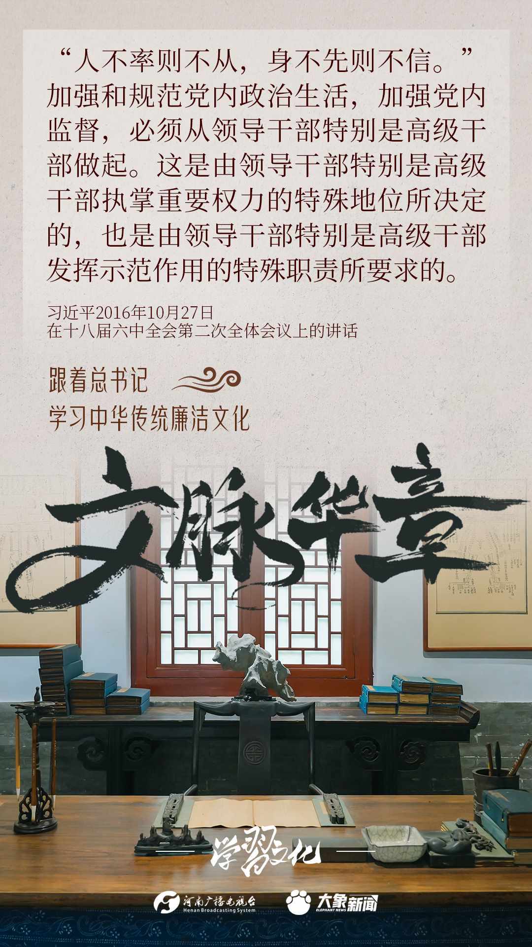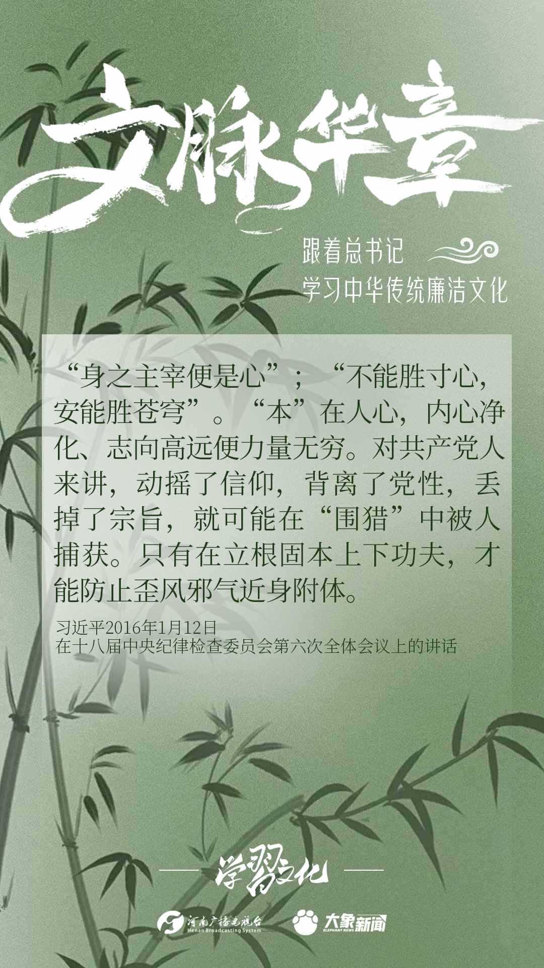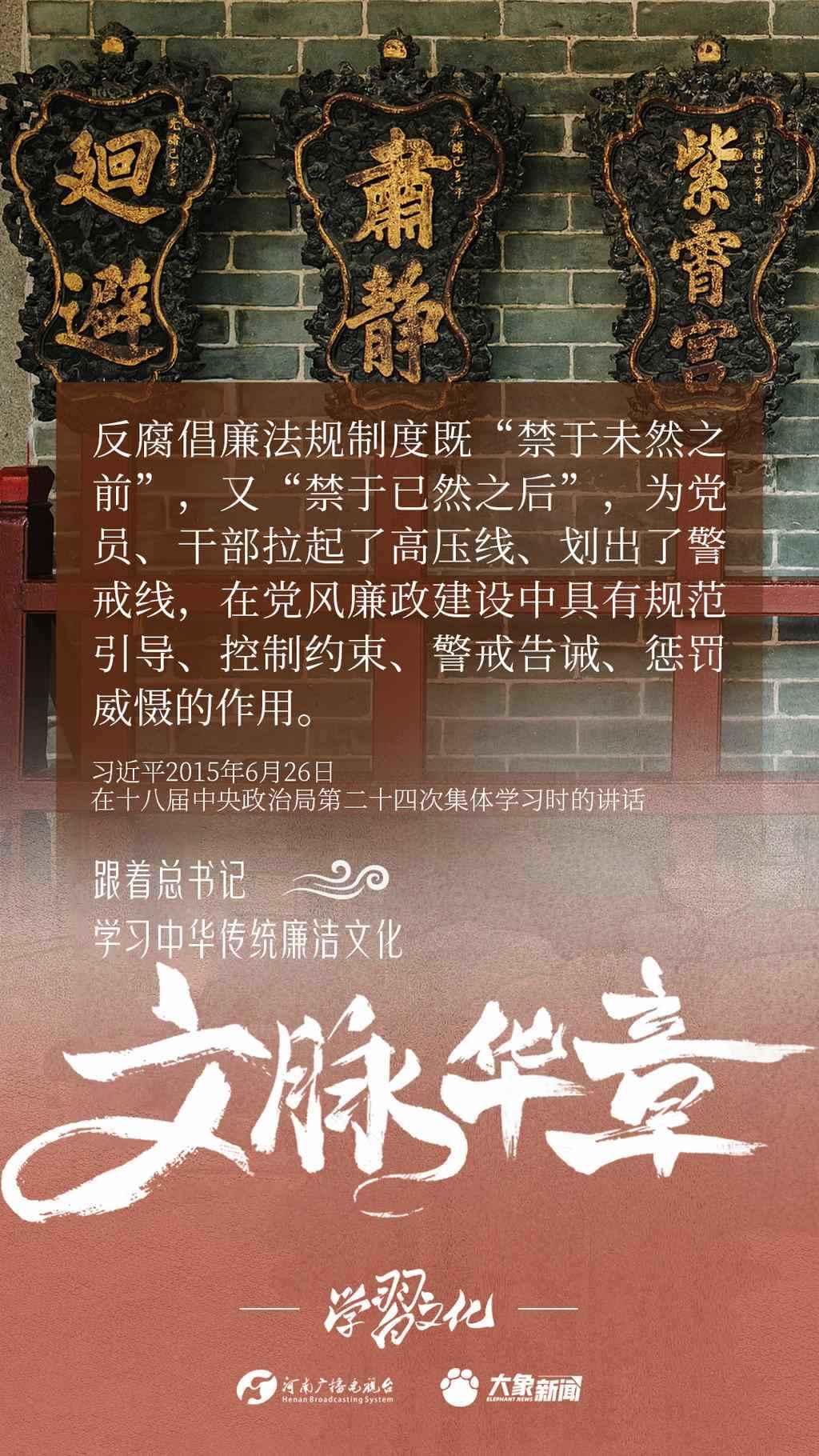 中華優(yōu)秀傳統(tǒng)文化蘊(yùn)含著豐富的廉潔文化,習(xí)近平總書記曾指出:沒(méi)有中華優(yōu)秀傳統(tǒng)文化、革命文化、社會(huì)主義先進(jìn)文化的底蘊(yùn)和滋養(yǎng),信仰信念就難以深沉而執(zhí)著??倳洺3R?jīng)據(jù)典,教育引導(dǎo)廣大黨員干部正心修身,涵養(yǎng)文化,守住為政之本。大象新聞分五期為您梳理,我們一起跟著總書記學(xué)習(xí)中華傳統(tǒng)廉潔文化。今天推出第四期。