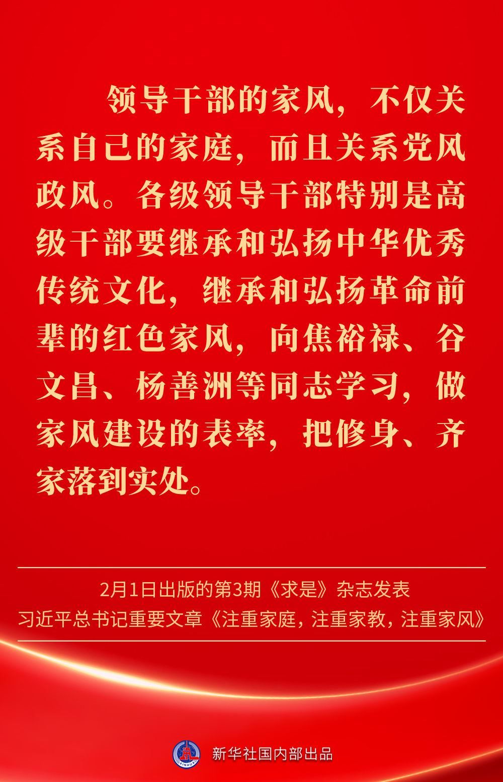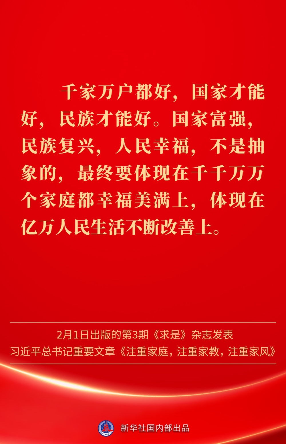 萬家團圓共慶新春佳節(jié)之際,2月1日出版的第3期《求是》雜志發(fā)表習近平總書記重要文章《注重家庭,注重家教,注重家風》。為什么要注重家庭、家教、家風?如何做好家庭文明建設?習近平總書記這樣闡述——
