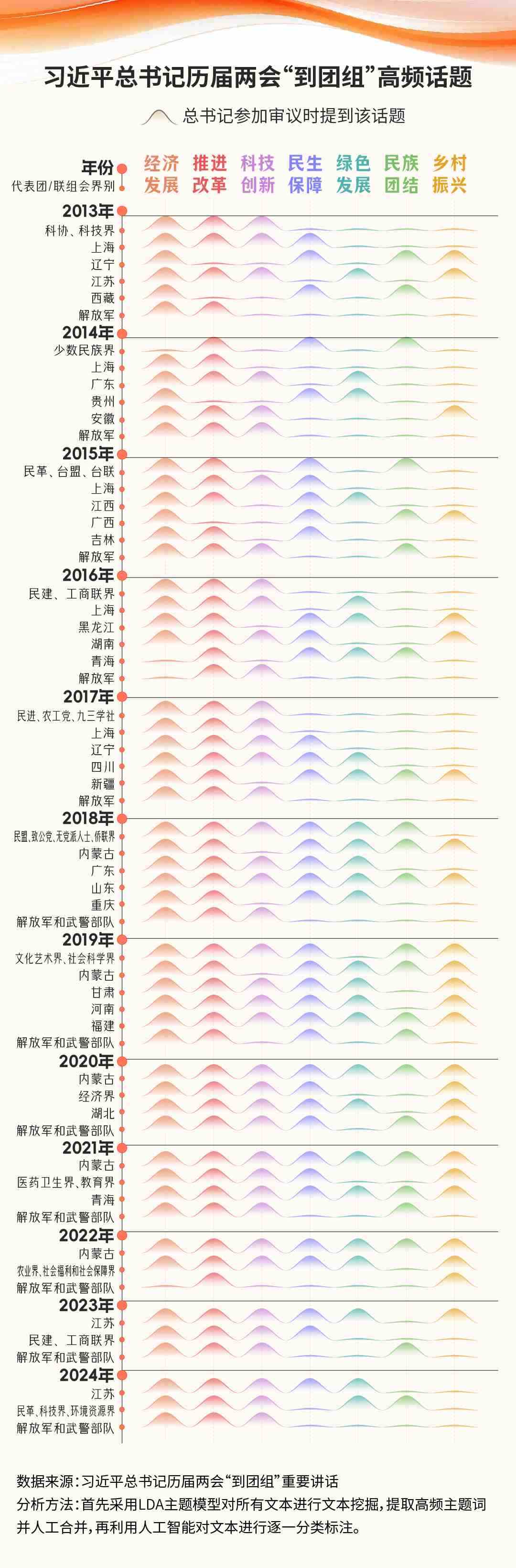 這些年的兩會,習(xí)近平總書記都談及了什么話題?最經(jīng)常去哪些團組?近年有什么新的話題是習(xí)近平總書記關(guān)心的?