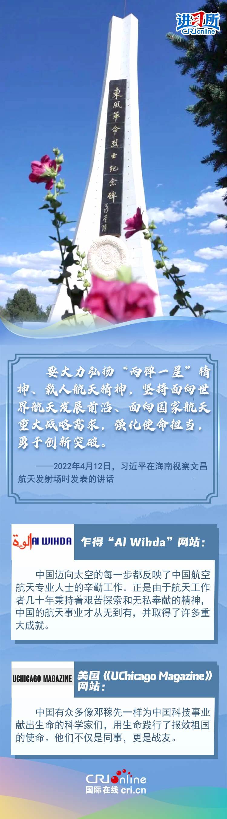 新時(shí)代以來,從設(shè)立烈士紀(jì)念日到出臺英雄烈士保護(hù)法,再到加強(qiáng)烈士紀(jì)念設(shè)施保護(hù),中國崇尚英雄、學(xué)習(xí)英雄的社會風(fēng)尚贏得國際社會贊譽(yù)。在國際人士眼中,中國多年來飛躍式的進(jìn)步和發(fā)展,離不開人們對先輩意志的繼承與實(shí)踐。