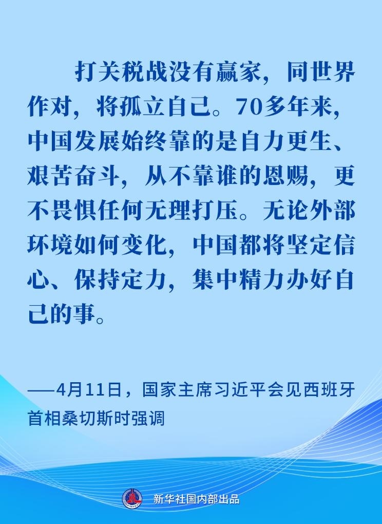 “打關(guān)稅戰(zhàn)沒有贏家,同世界作對(duì),將孤立自己。70多年來,中國(guó)發(fā)展始終靠的是自力更生、艱苦奮斗,從不靠誰的恩賜,更不畏懼任何無理打壓。無論外部環(huán)境如何變化,中國(guó)都將堅(jiān)定信心、保持定力,集中精力辦好自己的事?!?/p>